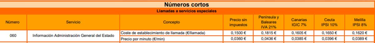 De hecho, uno de estos teléfonos de numeración corta es el 060 para consultas de la Administración. Un número que sirve para solicitar información sobre cuestiones relacionadas con los distintos organismos públicos, pero que, como vamos a ver a continuación, no es gratis. Por el contrario, es un teléfono que tiene una tarifa y coste distintos en función de la compañía telefónica.