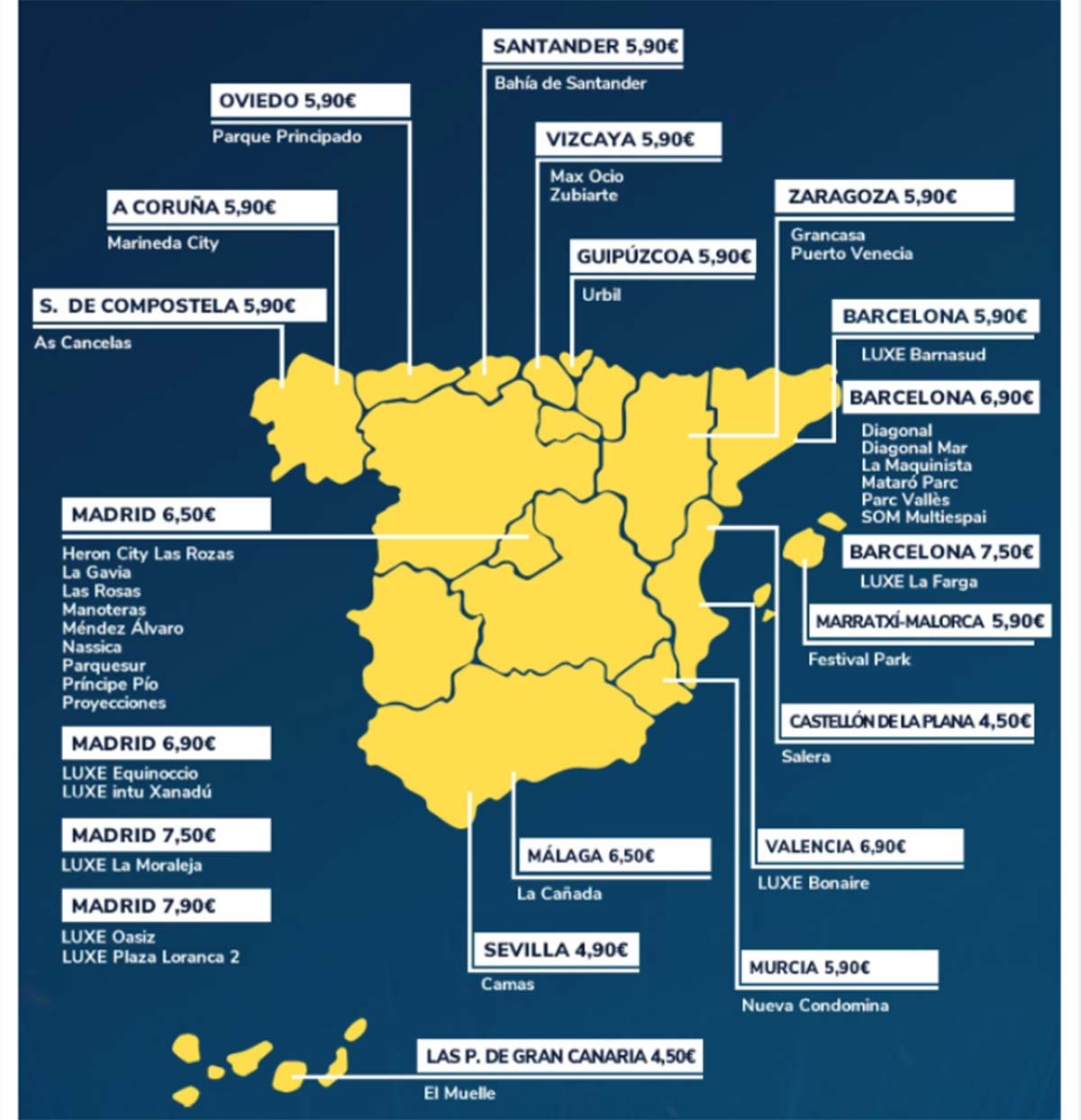 Por ejemplo, hay sesiones matinales o golfas desde 6,90 euros. Precio que varía en función de la localidad. Y también hay paquetes familiares desde 4,50 euros, importe que varía en función de la sala de cine a la que quieras ir.