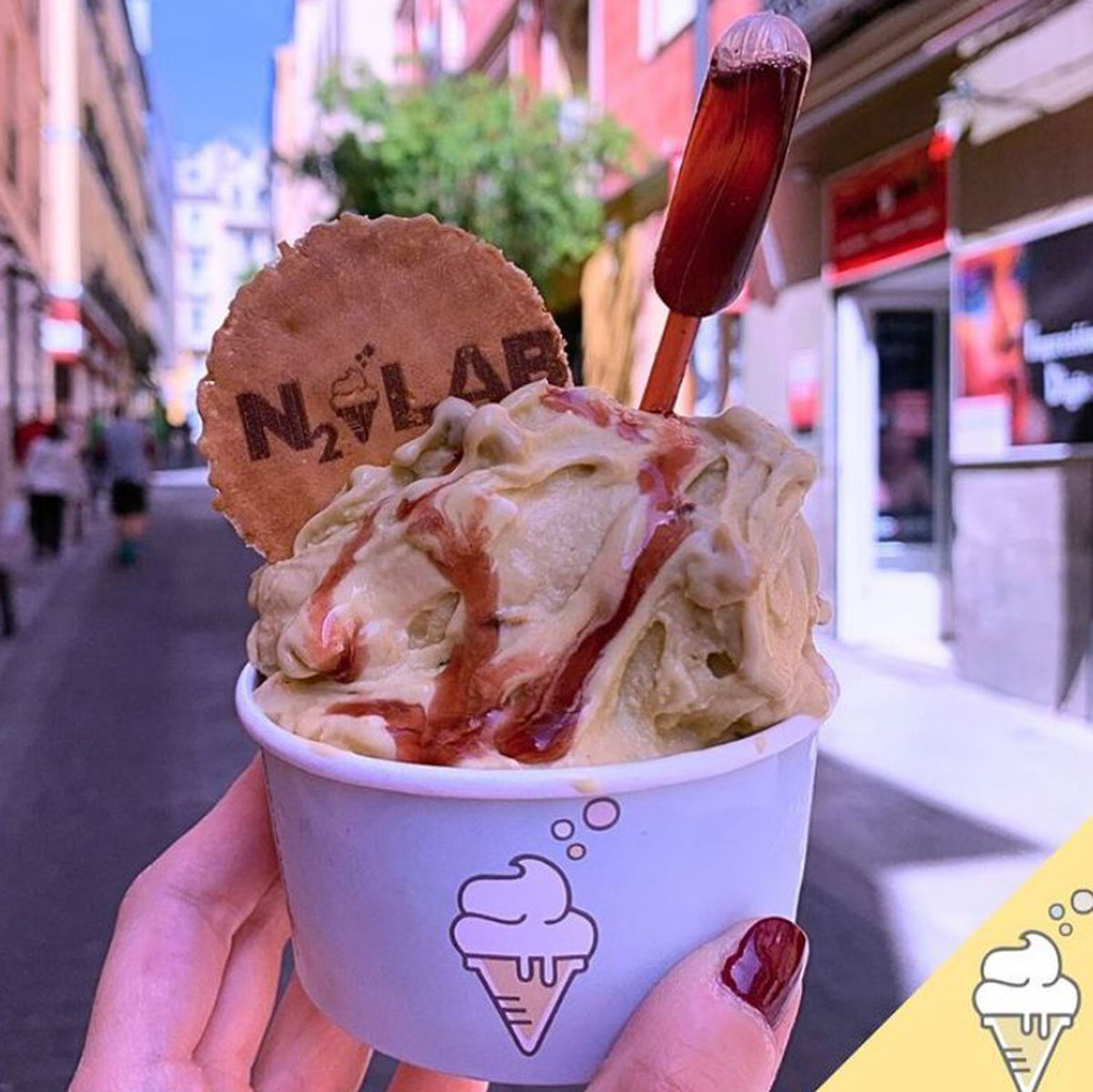 El nombre y el aspecto de este local está inspirado en un laboratorio porque realizan sus helados con nitrógeno líquido. Está situado en el céntrico barrio de Chueca y no te puedes perder el helado de caramelo con Peta Zetas.