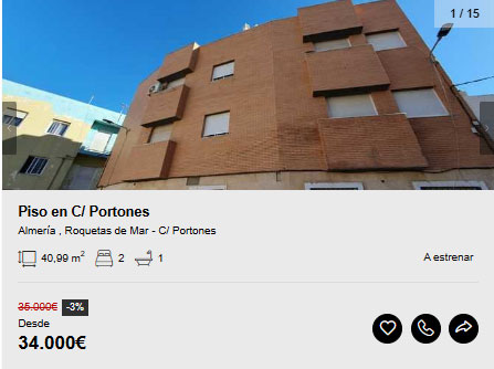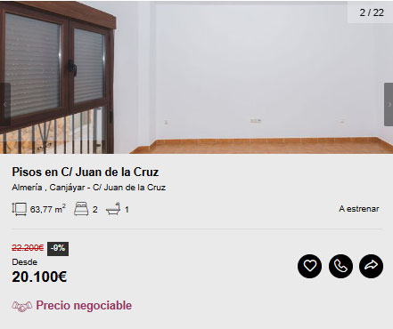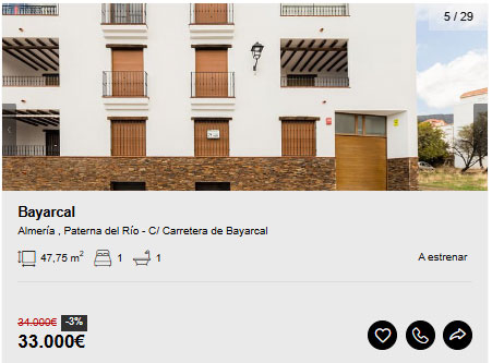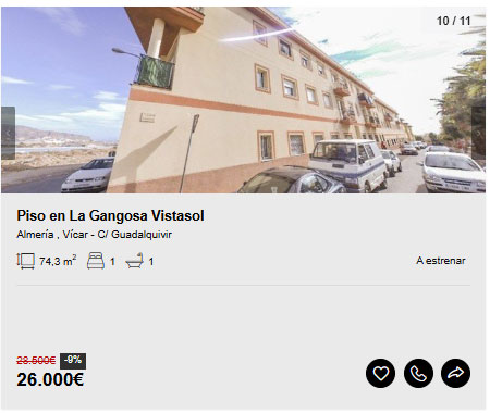 Estos atractivos precios se deben a que son pisos propiedad del banco y que, tras haberlos adquirido por embargos, desahucios o ejecuciones hipotecarias, ahora se les quiere dar salida. La oferta que presenta este servicer incluye inmuebles en buen estado, la mayoría en la provincia de Almería y cerca de la costa y con un coste inferior a 36.000 euros. Te detallamos dónde están cada uno.