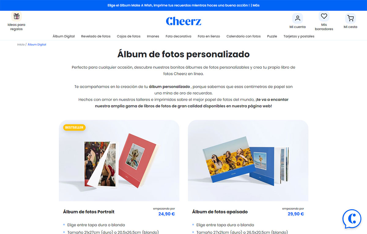 Cheerz es otra de las webs en las que se puede confeccionar un álbum de fotos personalizado de una forma fácil, rápida y sencilla. Algunos de los modelos más destacados del catálogo de esta compañía es la siguiente: