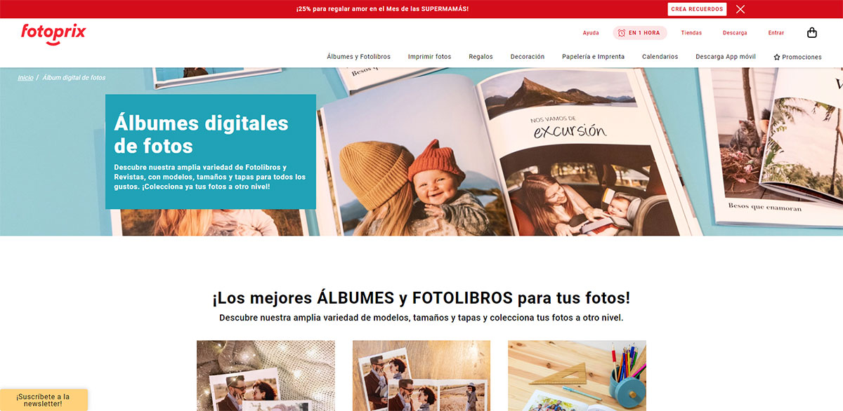 Fotoprix es una de las páginas web especializadas en las que los usuarios pueden crear y diseñar álbumes de fotos digitales. En concreto, esta plataforma ofrece al usuario la posibilidad de elegir entre distintos diseños y opciones de álbumes personalizados de fotografías: