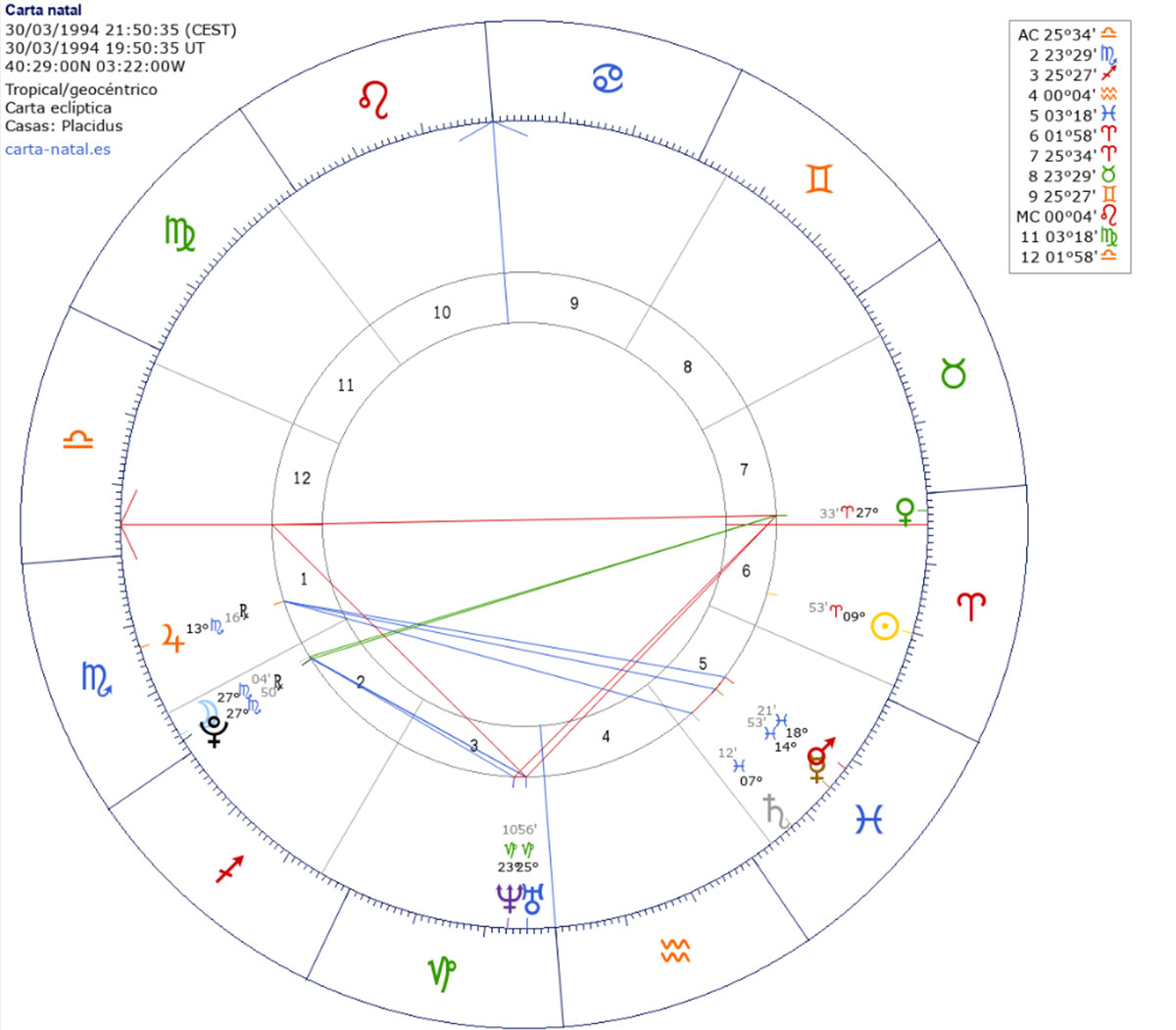 Una vez introducidos todos los datos, seleccionar el botón azul que dice aceptar y listo. A continuación puedes el mapa de tu carta astral.