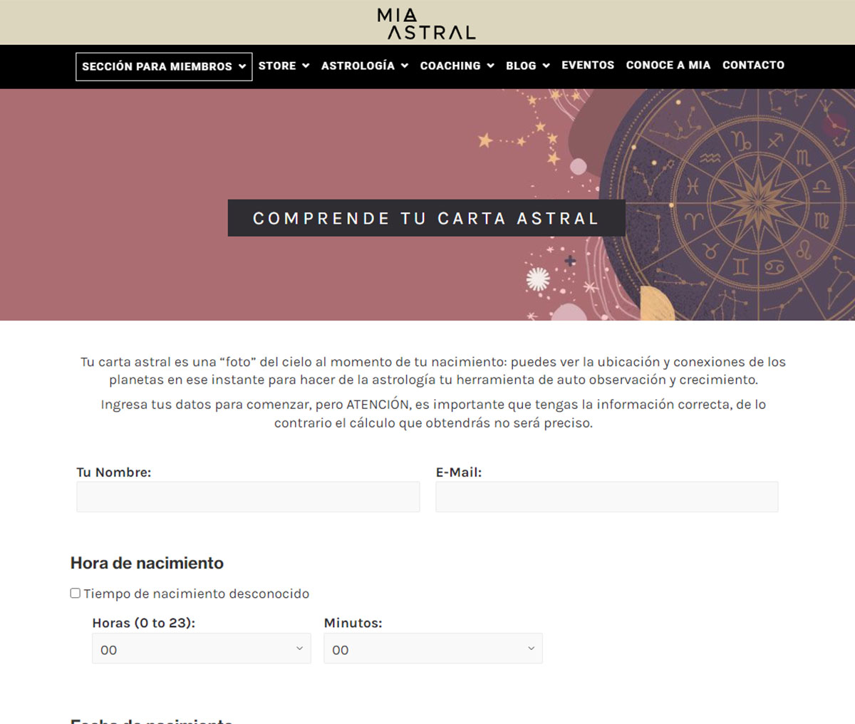Miastral es otra de las páginas web en las que es posible consultar la carta astral de una persona gratis y rápido. Para ello, al igual que en las otras dos páginas, hay que cumplimentar un formulario con los datos básicos.
