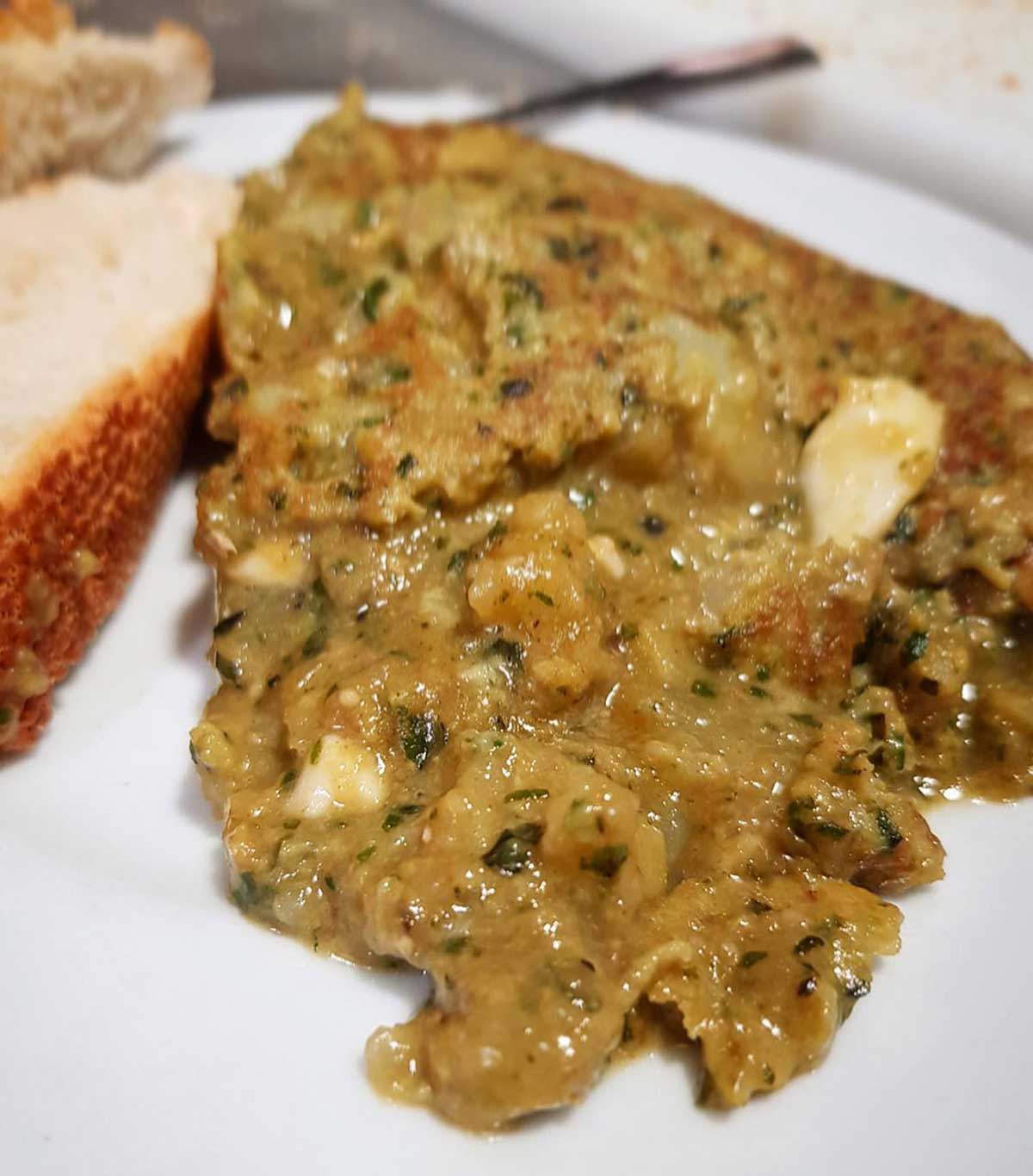 Además de degustar el típico trozo o pincho de tortilla clásico, en Pez Tortilla cuentan con una carta innovadora que ofrece este plato combinado o, más bien integrado, con otros componentes. Desde la tortilla de patata con queso de cabra que puedes ver en la siguiente imagen.