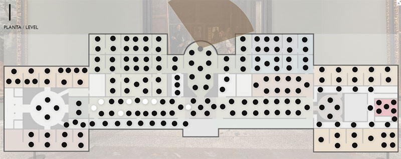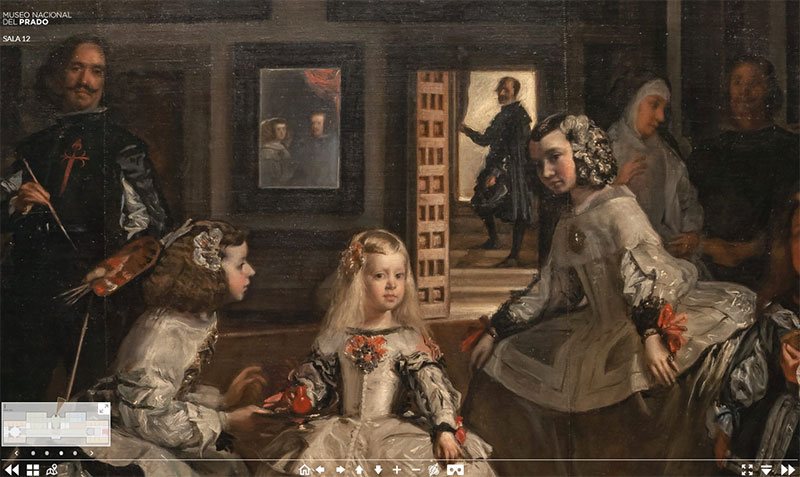 - Por ejemplo, si quieres ver el cuadro de Las Meninas de Velázquez, uno de los más famosos del museo, tendrás que acudir al mapa que aparece en la esquina inferior izquierda y seleccionar la sala 12, situada en la planta 1.