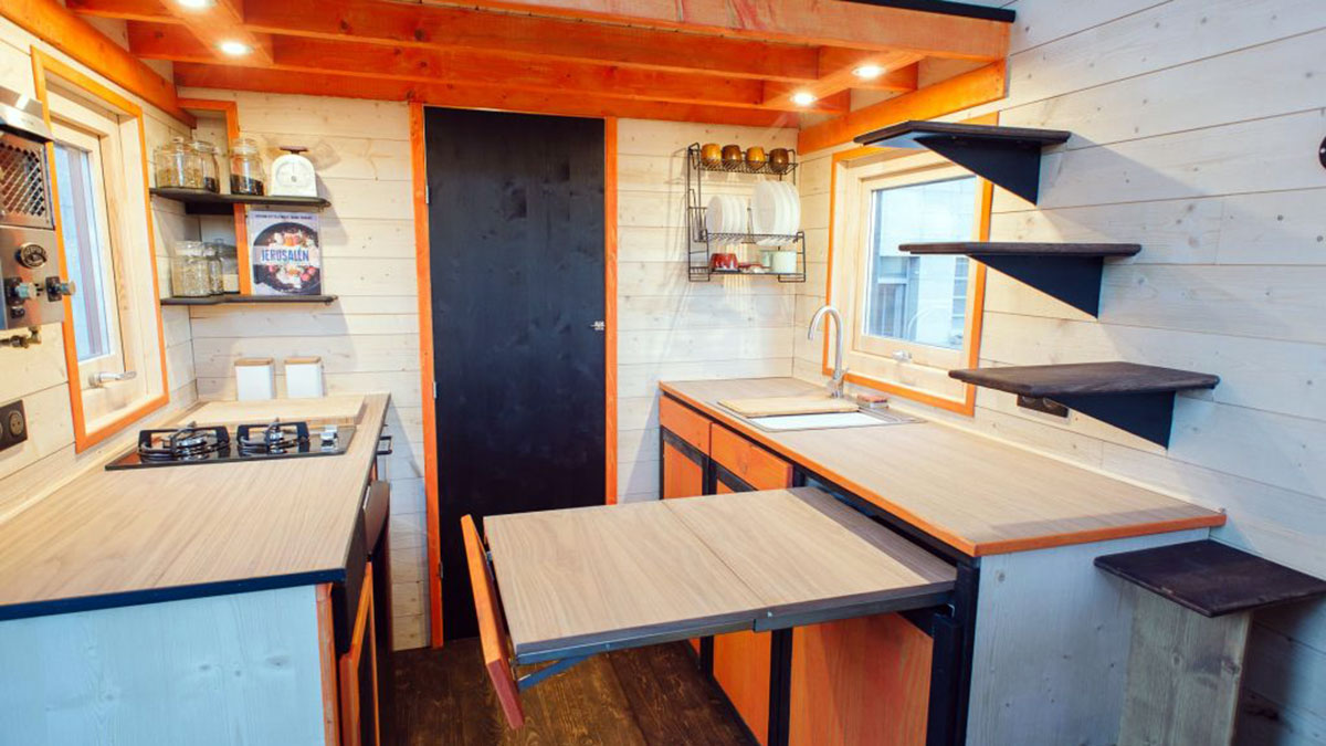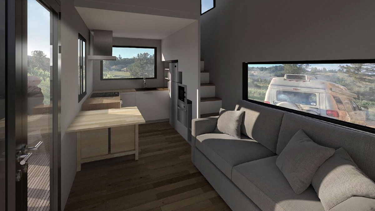 Los clientes puede elegir entre acero galvanizado, acero corten, madera quemada o termo tratada. La opción más barata es el acero galvanizado, que no supone ningún sobrecoste. Y están completamente equipadas. Incluyen sistema de climatización, baño y cocina, entre otros. En la siguiente imagen puedes ver una imagen del interior de estas viviendas.