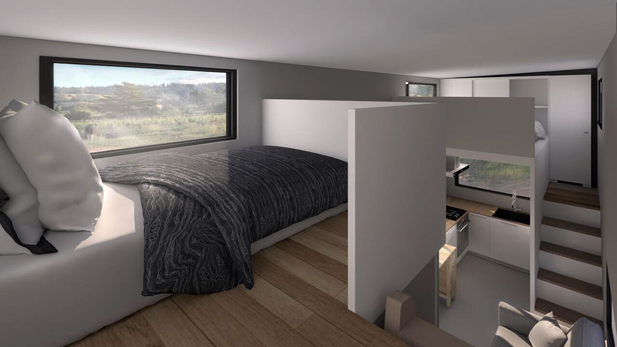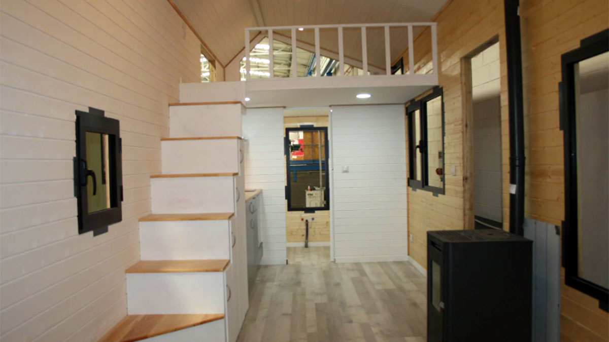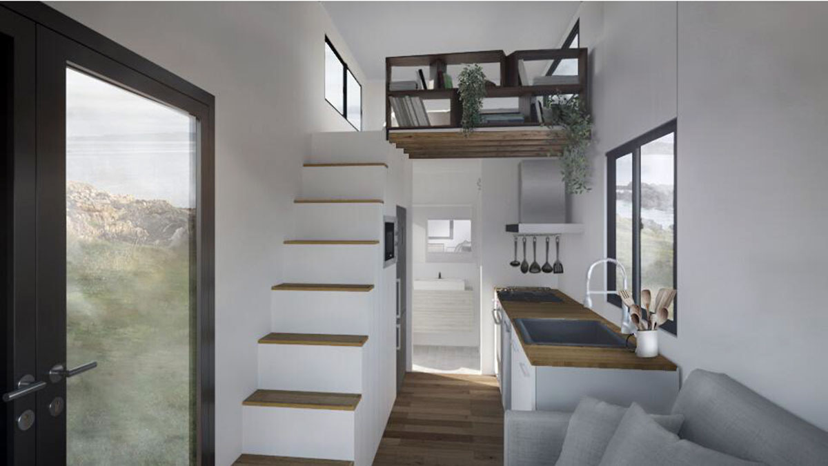 Otra categoría son los modelos O’Ghar. Una Tiny que tiene dos dormitorios dobles y es una vivienda muy espaciosa. Con cocina, baño y dos plantas. Las dimensiones son de 8,7 metros de largo, por 2,5 de ancho y 4,25 de alto. Es ideal para una familia de entre 4 y 6 personas.