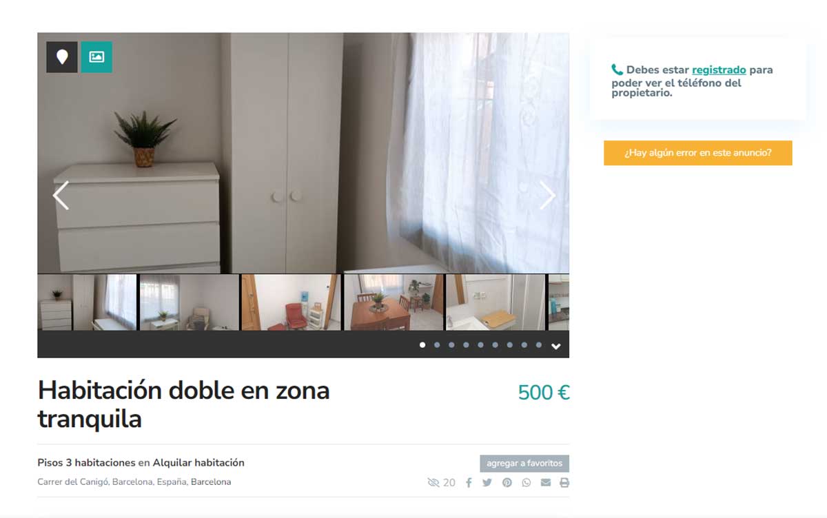 En el interior de cada anuncio puedes consultar tanto el precio a pagar, como las principales características y detalle de los inmuebles y habitaciones.