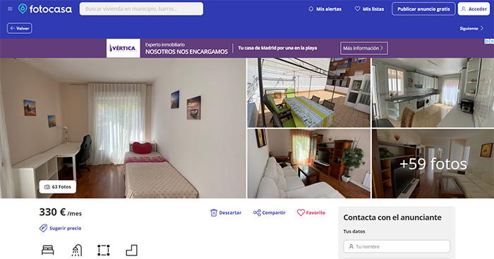 En el caso de encontrar una oferta que resulte interesante, cada usuario puede ponerse en contacto con los propietarios del inmueble mediante el teléfono de contacto que se encuentra en la parte superior derecha del anuncio.