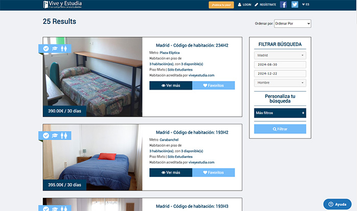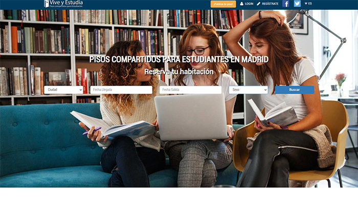 El portal Vive y Estudia cuenta con anuncios de alquiler de habitaciones para estudiantes en Madrid. A diferencia de otros portales que mencionamos en esta información, este solamente ofrece alquileres de pisos compartidos en Madrid.