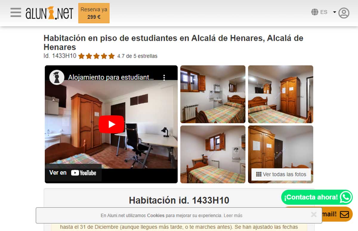 Tal y como explican en su página web, en Aluni los anuncios ofrecen una descripción detallada de los anuncios para que, la persona que busca habitación sepa cómo es la vivienda, el mobiliario que tiene, así como los compañeros de piso que hay.