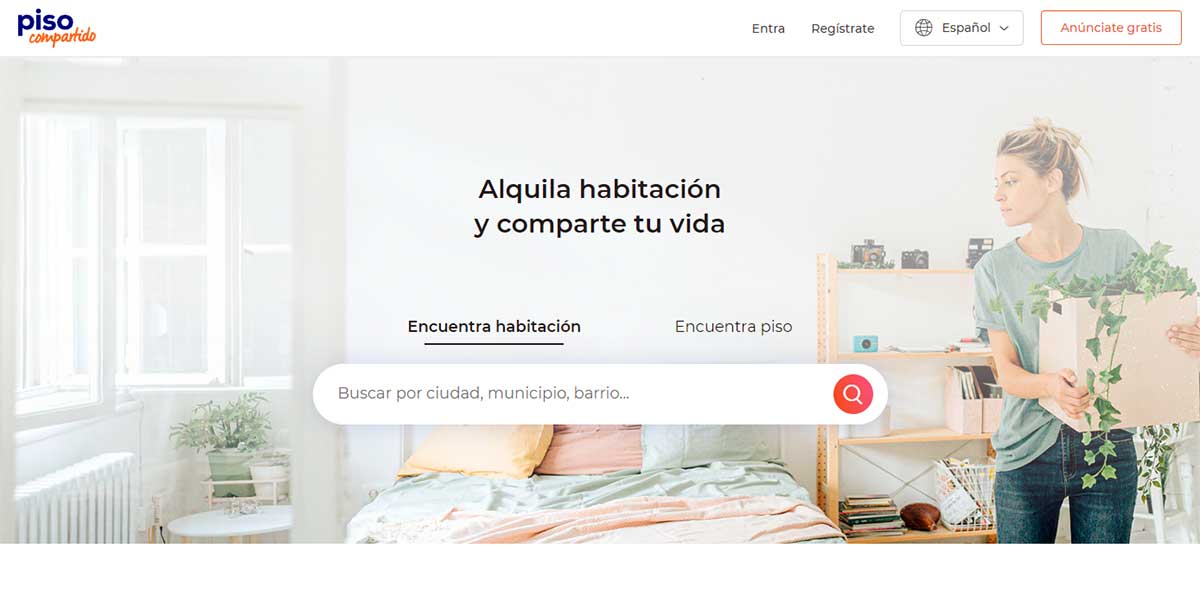 La web Pisocompartido cuenta con una sección específica de alquiler de habitaciones. En concreto, en la pantalla principal hay un buscador en el que es posible filtrar la búsqueda por vivienda completa o solamente por una habitación.