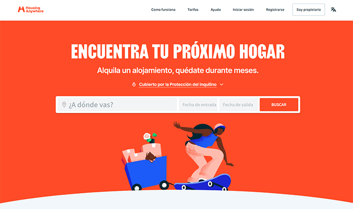 Este portal web permite realizar la búsqueda para alquilar un piso filtrando por ciudad y fecha de entrada y salida. Una de las grandes ventajas de HousingAnywhere es que protege a los compradores a la hora de efectuar el pago del alquiler y así evitar estafas.