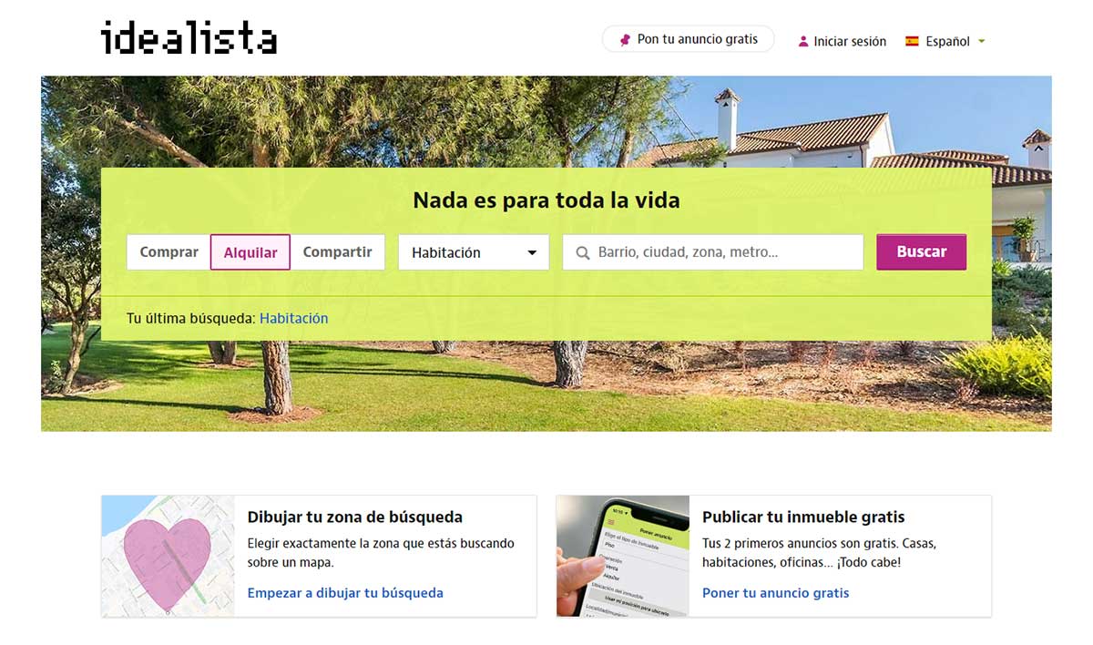 El portal Idealista cuenta con una sección específica de alquiler de habitaciones en el que los particulares pueden acceder a la oferta de viviendas que ofrecen este servicio en pisos compartidos.