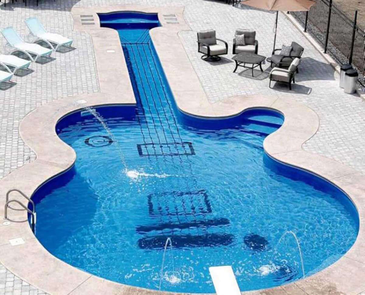 La empresa canadiense Aqua-Tech Company diseñó para un cliente coleccionista de guitarras una piscina con la forma de una Les Paul Custom, una de las marcas más icónicas de este instrumento.