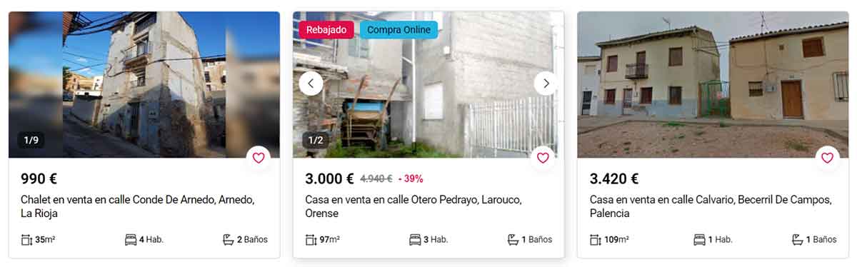 Los precios son realmente bajos, pudiendo adquirir una vivienda desde 990 euros y por un máximo de 6.000 euros. Cantidad a la que después habría que sumar el presupuesto o coste de la reforma integral para convertirlas en un espacio habitable. Puedes ver algunas de las ofertas de viviendas más baratas para reformar en esta misma información.