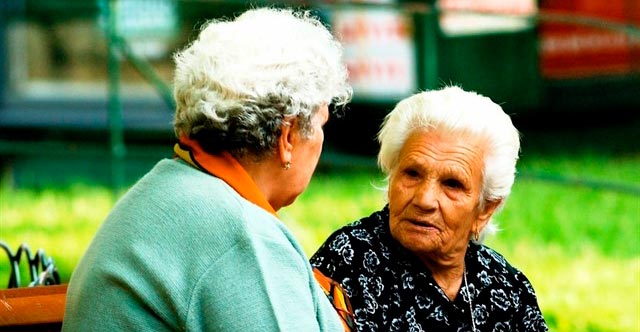 Señoras que van paseando y se paran en seco para dramatizar la conversación