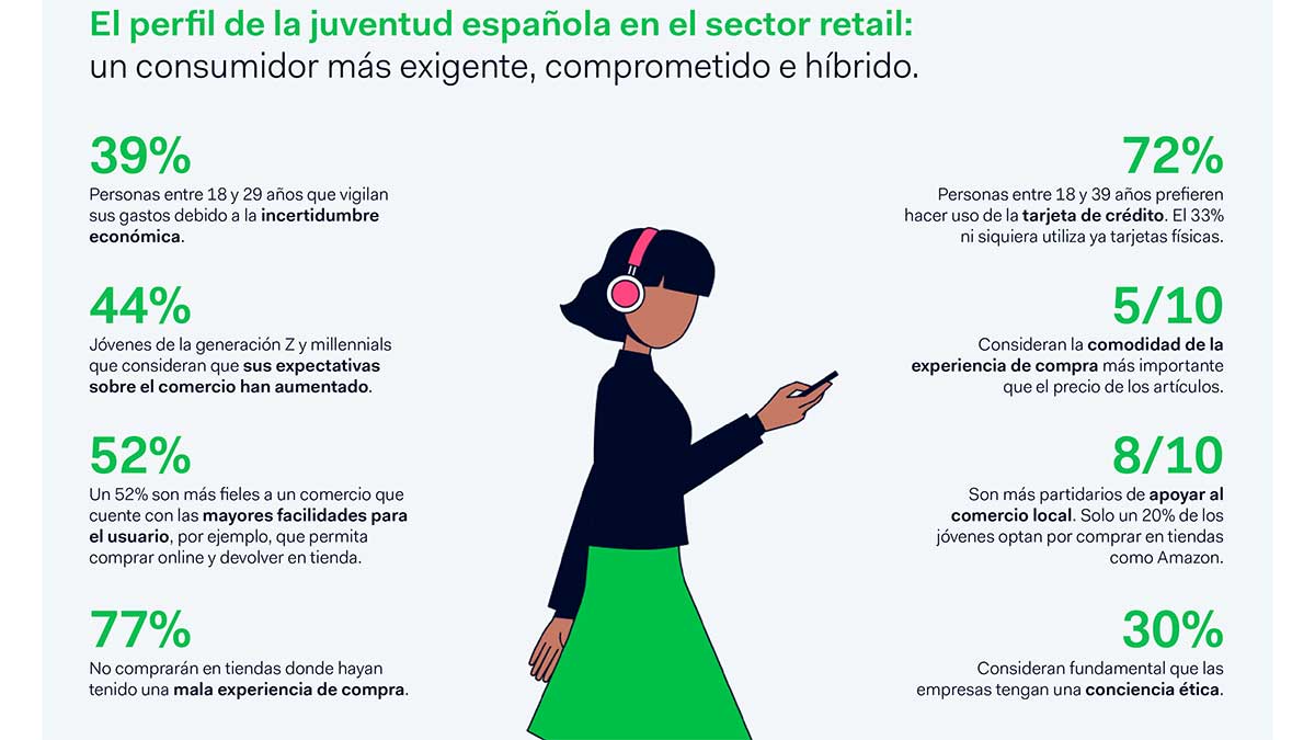 Este perfil de comprador completamente nuevo además valora mucho su experiencia durante la compra y las facilidades que puedan ofrecer los comercios. Así, según Juan José Llorente, country manager de Adyen en España y Portugal, “el 77 % de los jóvenes en España no comprará en establecimientos con los que haya tenido una mala experiencia de compra previa, ya sea por internet o en tienda. Mientras que casi 5 de cada 10 consideran la comodidad de la experiencia de compra, es decir, dónde está la tienda u opciones de entrega incluso de modo más importante que el precio mismo de los artículos”.
