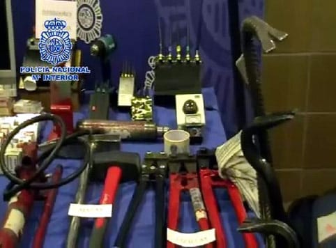 Estos utensilios eran utilizados para forzar cerraduras, cajas fuertes o realizar los butrones. Además, se han aprehendido varios inhibidores, walkies, equipos discretos de comunicaciones y ordenadores.