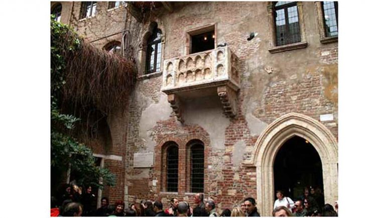 Verona es por excelencia, la ciudad de los enamorados, y aunque no la conociera, inspiró a Shakespeare su inmortal drama Romeo y Julieta. Según el escritor la casa de su heroína estaba cerca de la Piazza Erbe, en el número 27 de la Vía Cappello, desde donde Julieta escuchaba los bonitos versos que Romeo le dedicaba, y ella se decidió a invitarle a subir en la famosa escena donde le lanzaba su larga cola para que escalara hasta el altísimo balcón.