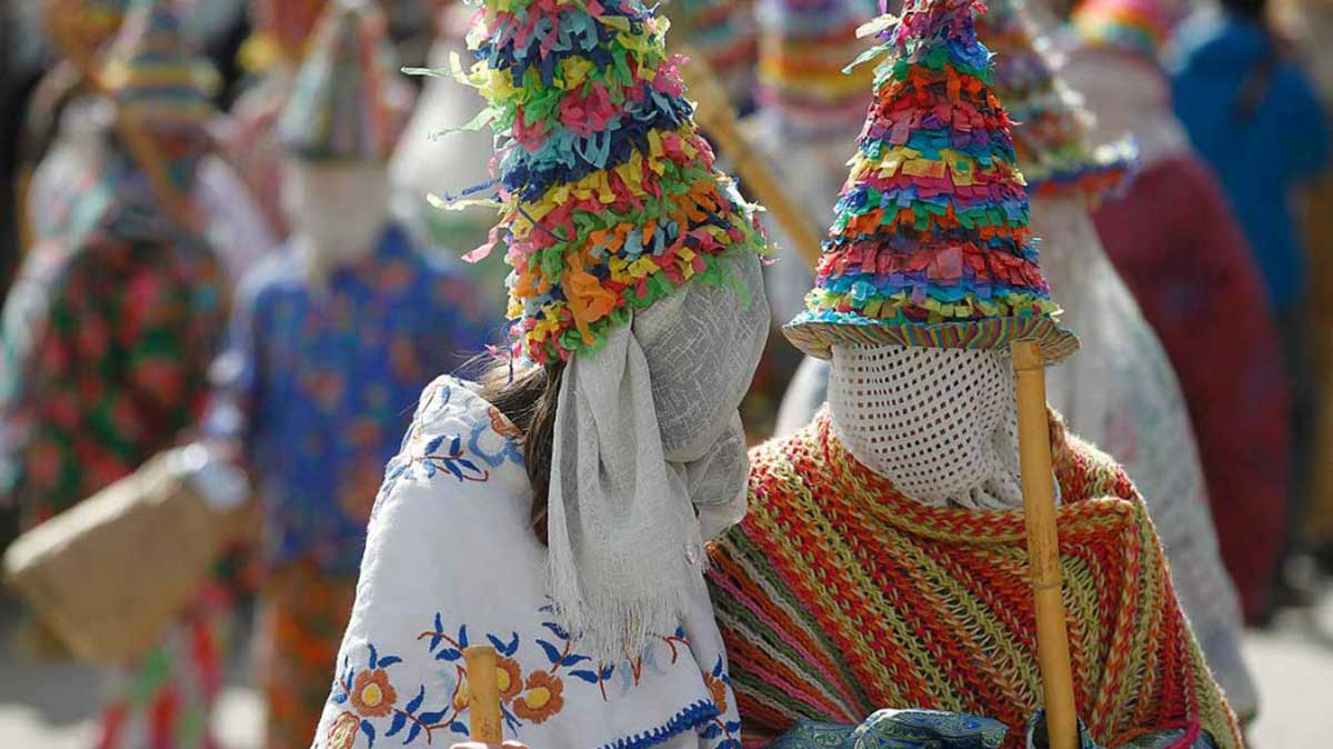 Los grupos de “Peliqueiros” animan rúas, plazas y eras, con su artesanal y cuidada indumentaria que suma elementos y rituales antiguos, medievales, barrocos.