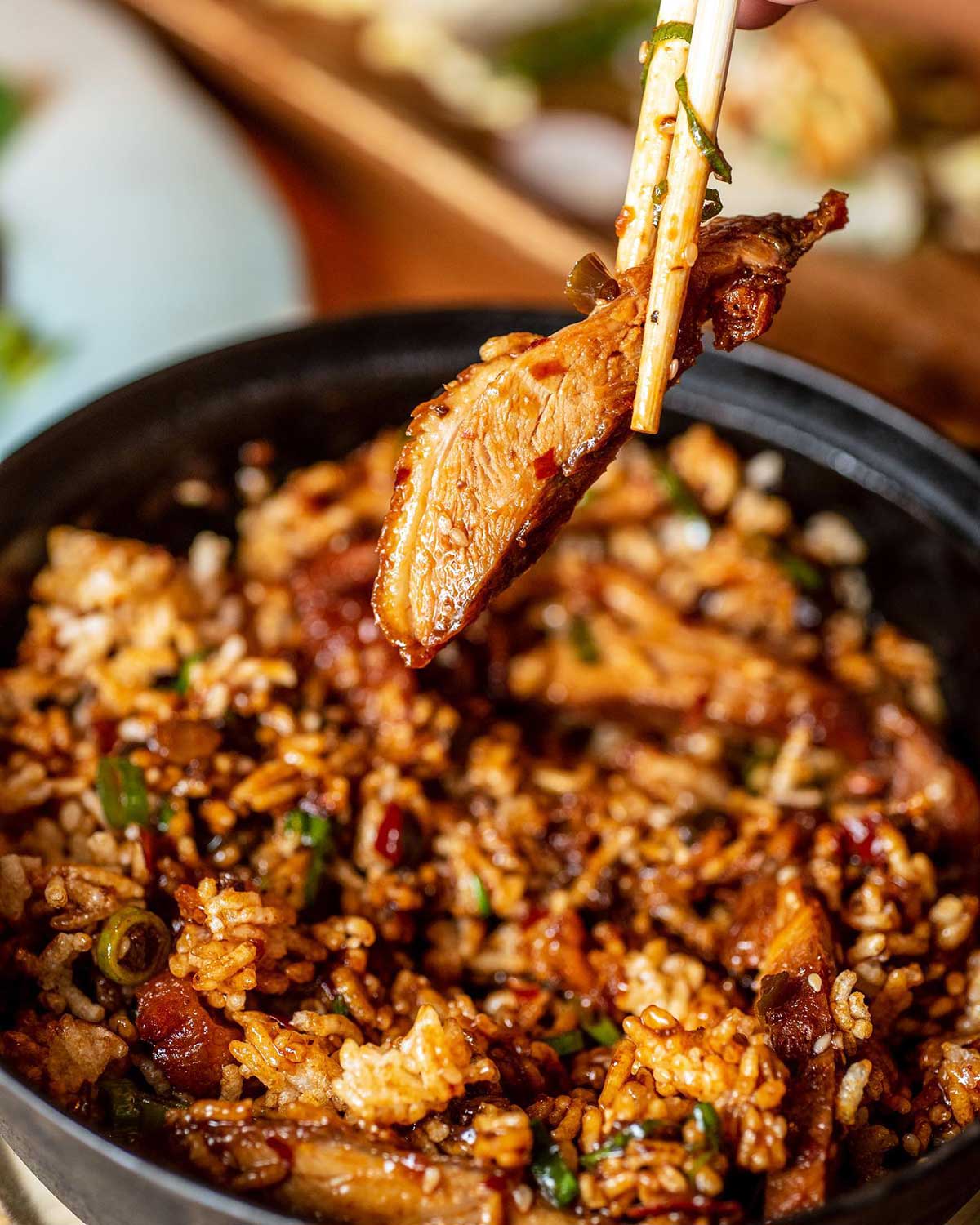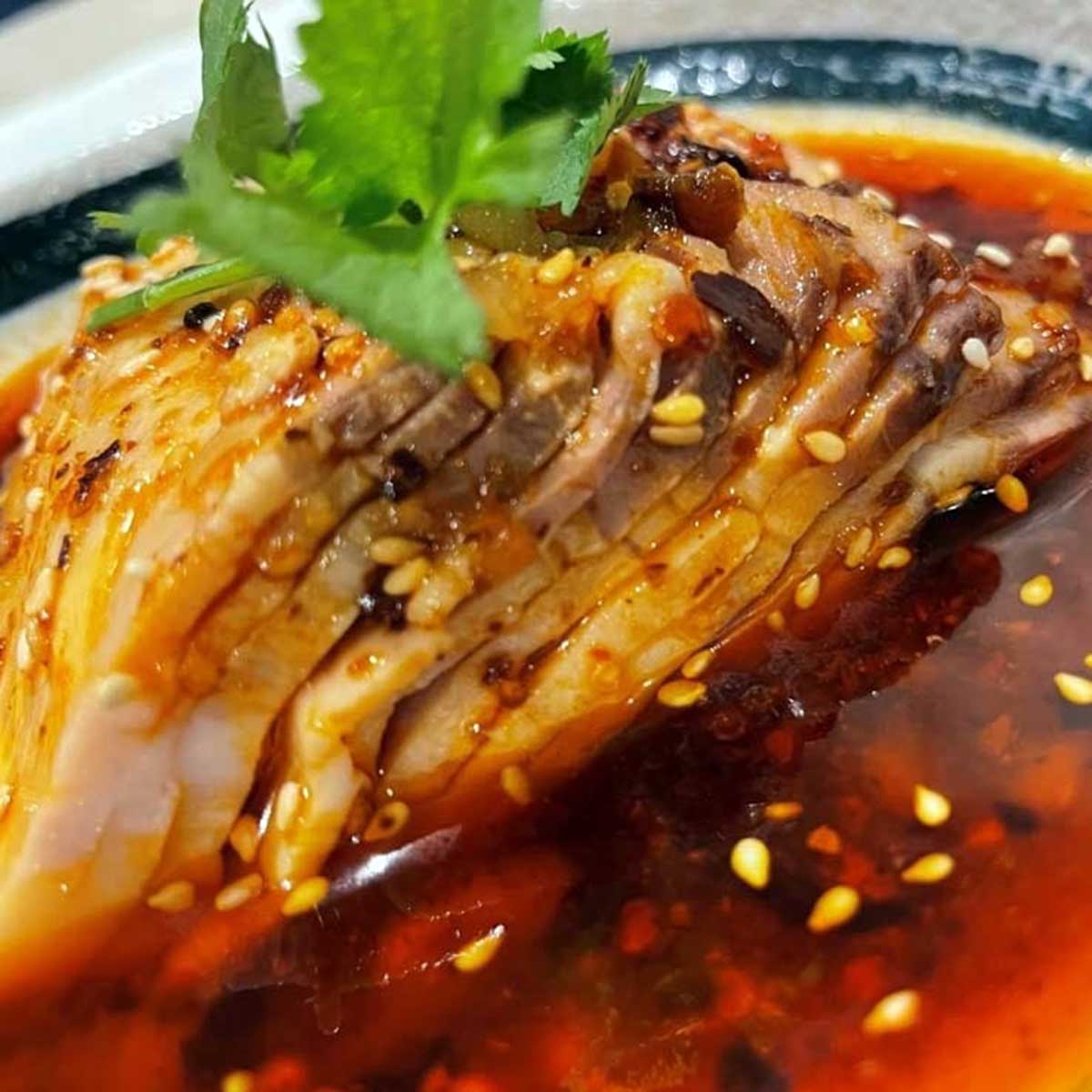 La panceta a la sichuanesa tiene un precio de 7,50 euros y se trata de un producto cocinado a fuego lento en salsa de aceite picante.