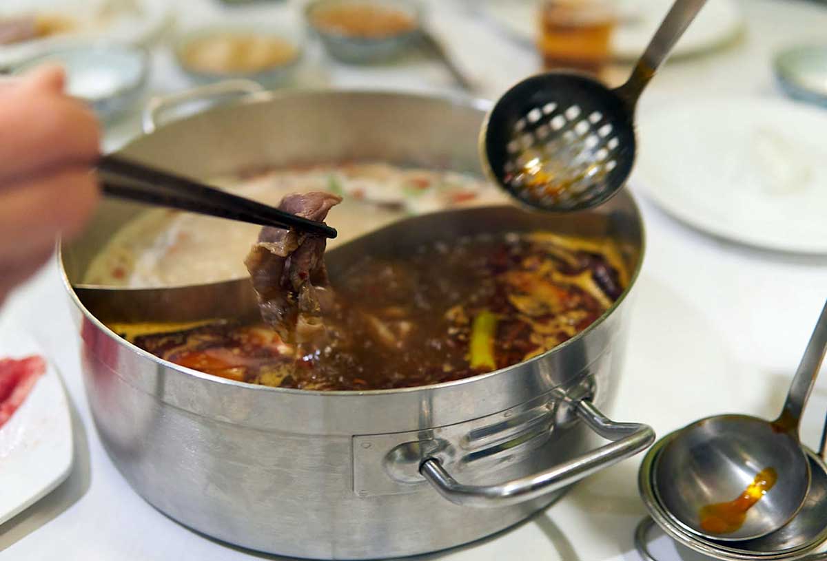 Destacan las ollas sichuanesas con diferentes ingredientes de carnes, verduras y pescados.
