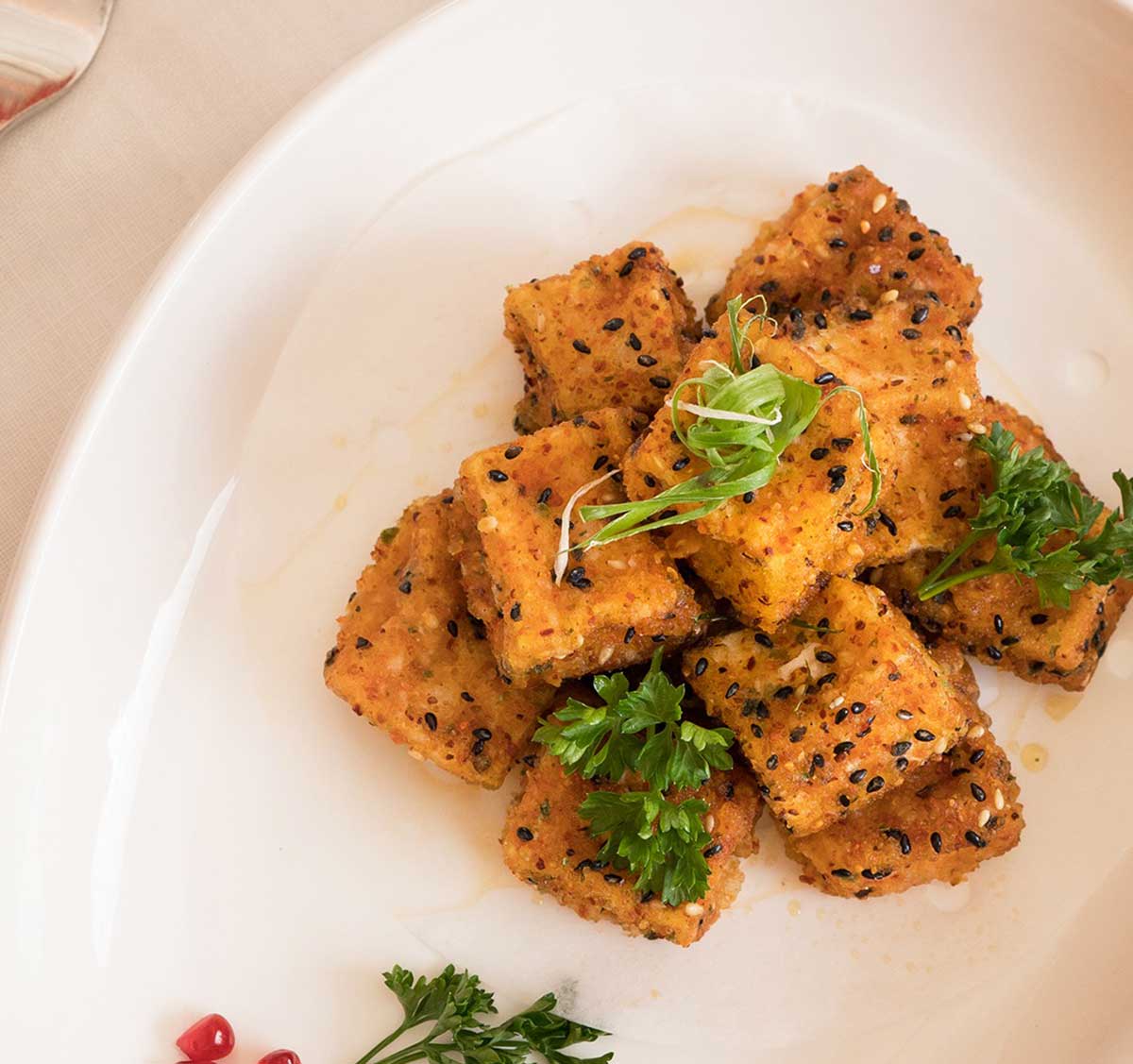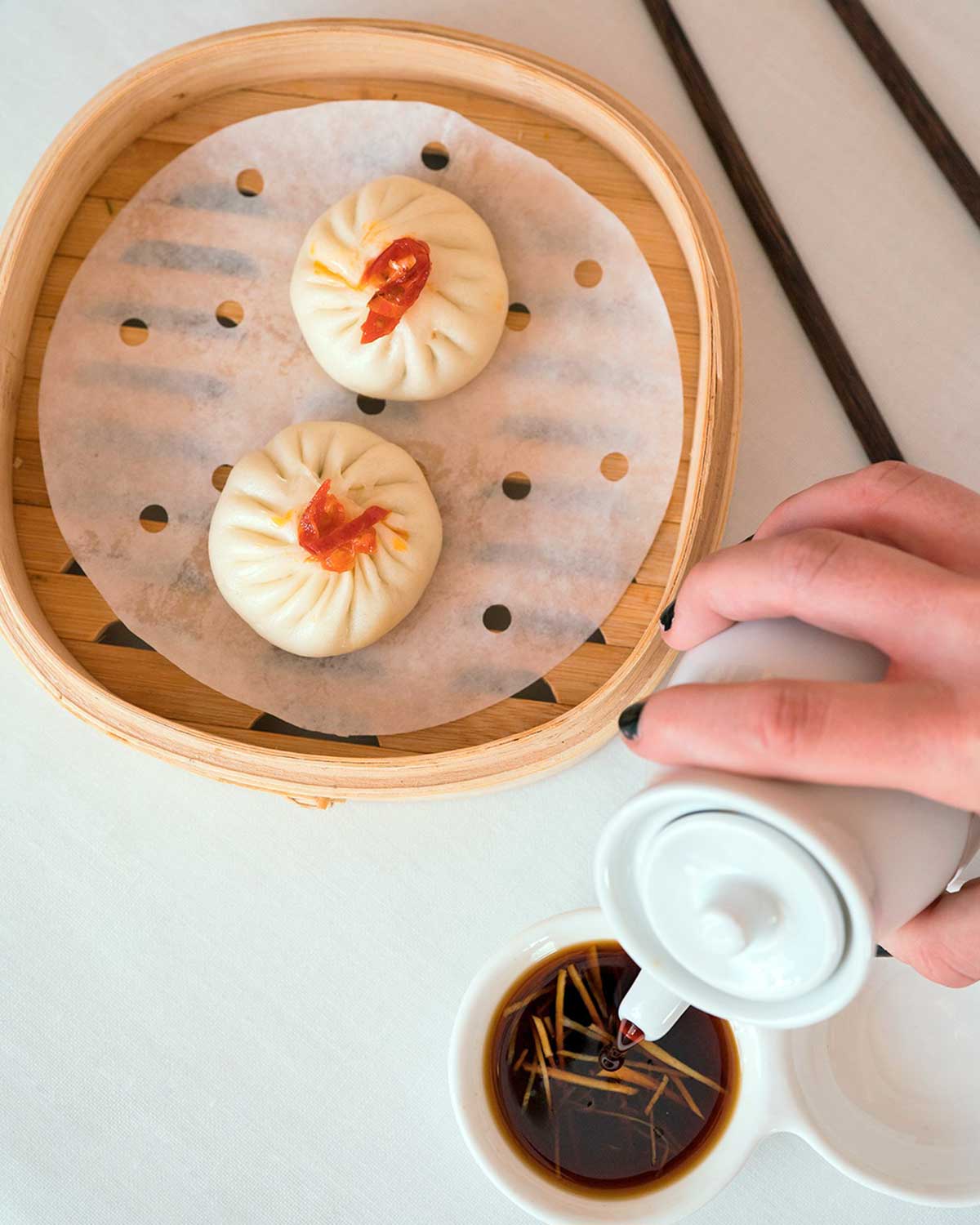 Escabeche picante de pollo de corral estilo Chon Qing para abrir apetito y algún Dim Sum preparado a la vista de los comensales. Los de mayor fama son los de trufa y txangurro. Aunque para los más atrevidos, la carta cuenta con uno de aleta de tiburón.