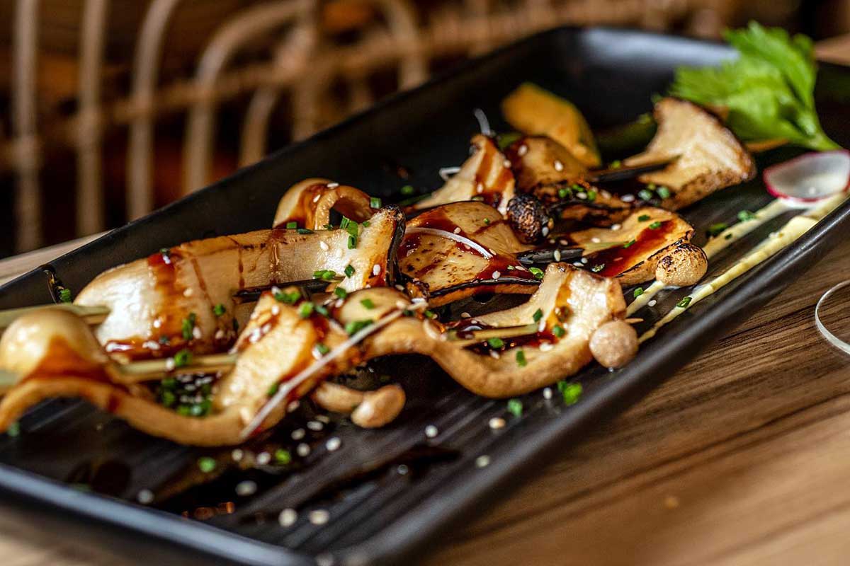 También hay una amplia selección de platos de parrilla al carbón. Destacan las brochetas de pollo, la empanada de arroz, zamburiñas con ajo o las brochetas de setas, de cordero o de añojo. El precio medio es de 9 euros.