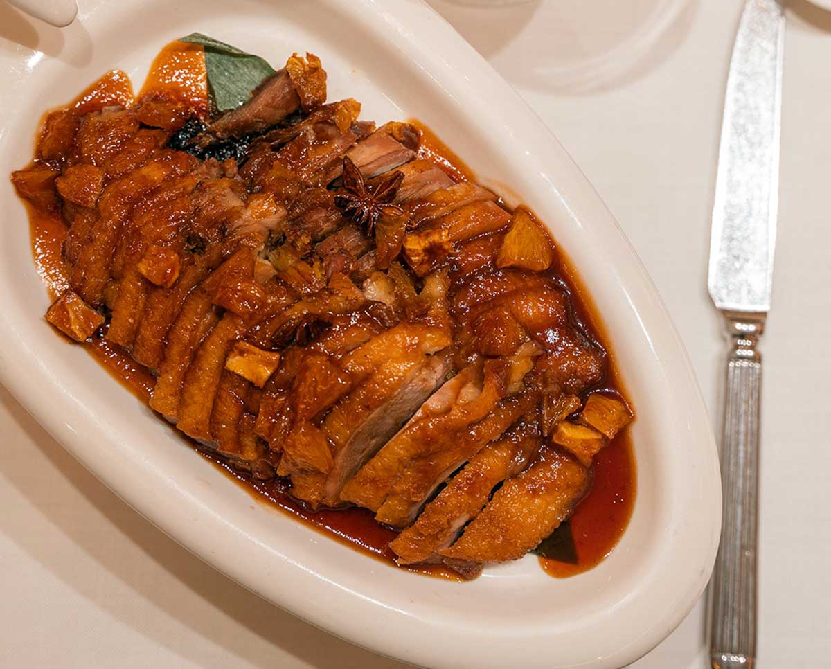 La estrella de la carta es el Pato imperial Beijing, un plato que, además de por su sabor, se caracteriza por una elaboración y servicio basada en u ritual que lo convierte en uno de los platos más internacionales y demandados de la gastronomía china.