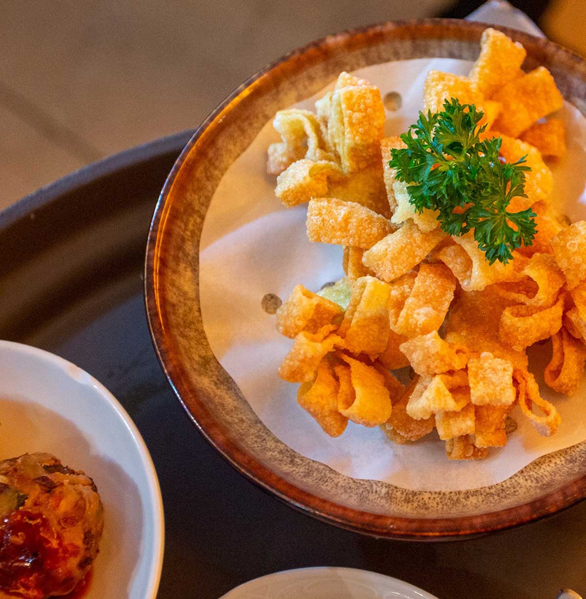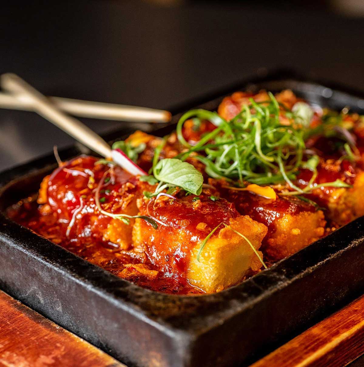 La propuesta gastronómica se centra en elaborar platos de comida callejera típica de China con sabores tradicionales. Además de los platos de la carta, el establecimiento cuenta con varios menús para hacer una degustación de los distintos platos.