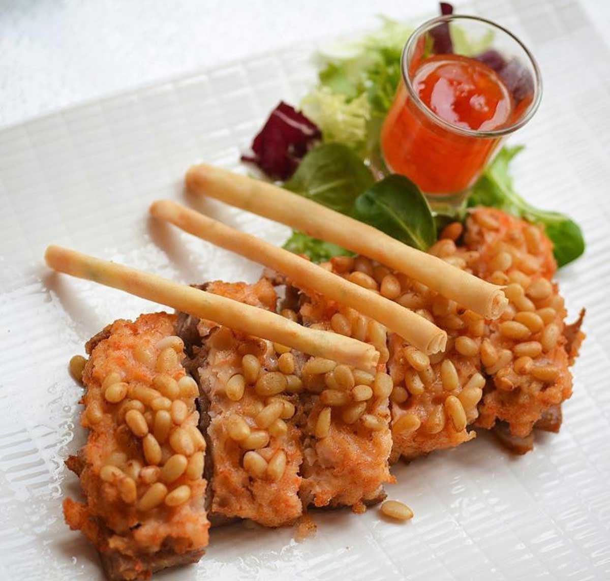 También se recomienda el rollito de ternera y marisco y el que está relleno de setas. Los dos tienen un precio de 7,50 euros por tres piezas.