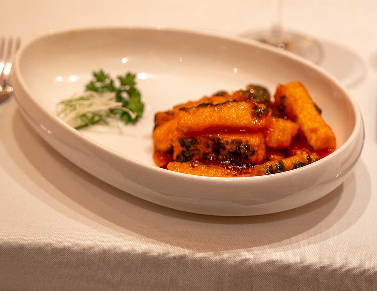 De la carta destacan los distintos platos de gastronomía china, como los típicos Dim Sum, las sopas, pastas y arroces y las cazuelas. En cuanto a los platos más destacados se encuentra el Dim Sum Changfen, que es un rollo de masa de arroz en varias texturas con relleno de gambas y setas. El precio es de 14 euros.