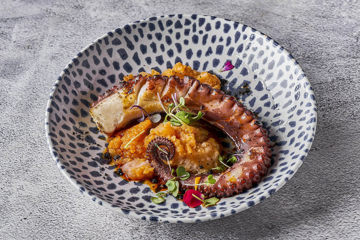 De los platos de la carta, destaca la fusión de la cocina gallega con los platos de vanguardia gastronómica a nivel internacional. Una propuesta que incluye platos para compartir a la que siguen los principales. Entre las elaboraciones más populares destacan los platos del mar, con lubina, rape, rodaballo o bacalao.