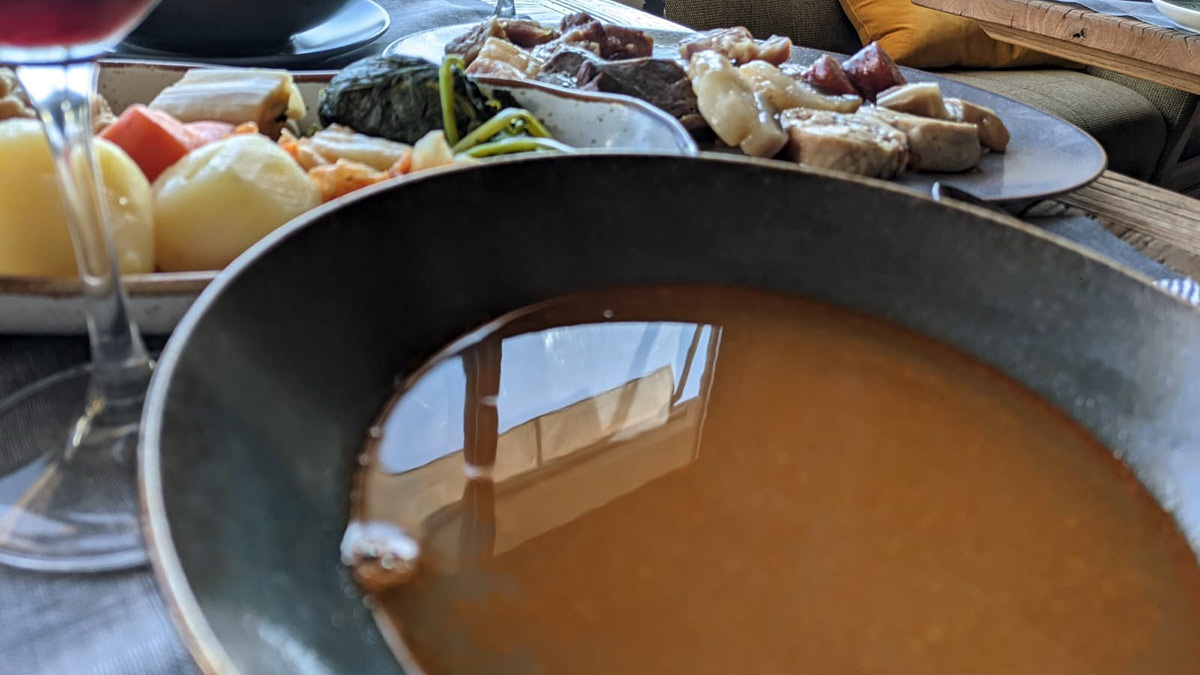 ¿El secreto para un cocido inmejorable según Daniel Cerdán? Además de la calidad de los productos empleados como hortalizas y legumbres locales y cerdos de castaña o raza celta, es imprescindible una buena compañía para comerlo y un buen tinto gallego para maridarlo.