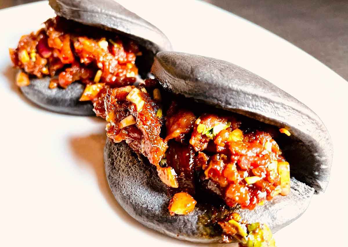 Para abrir apetito, entrantes como Po Pia Puk por 10 euros, que son mini rollos de verdura. También Satay Gai o brochetas marinadas en especias. Bao negro de carne marinada muy picante, por 16 euros. O 6 piezas de langostinos fritos por 14 euros de media.