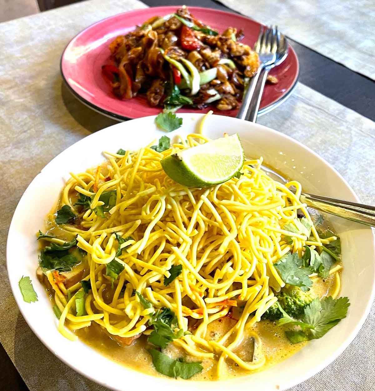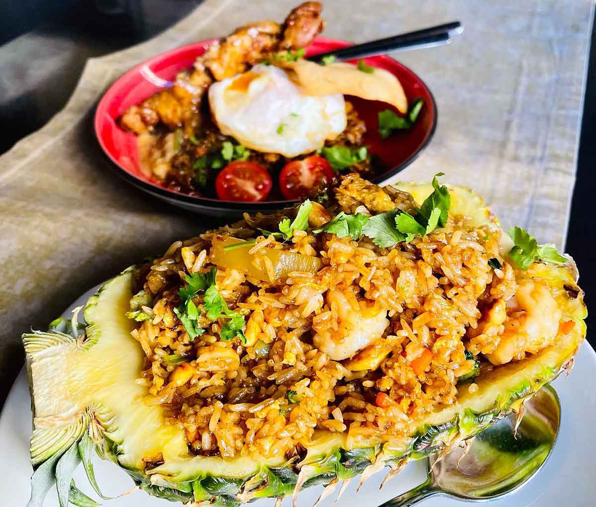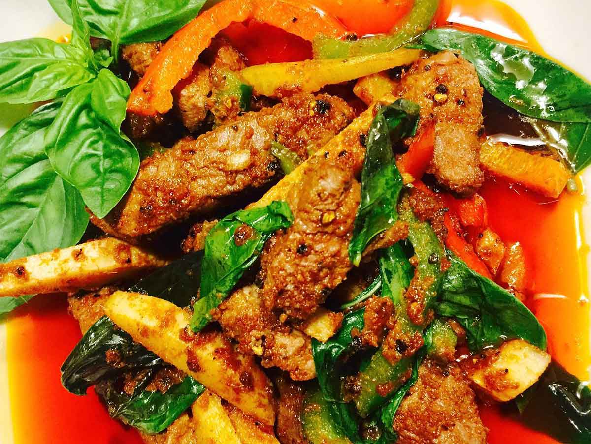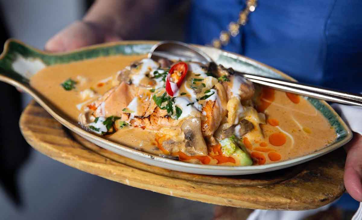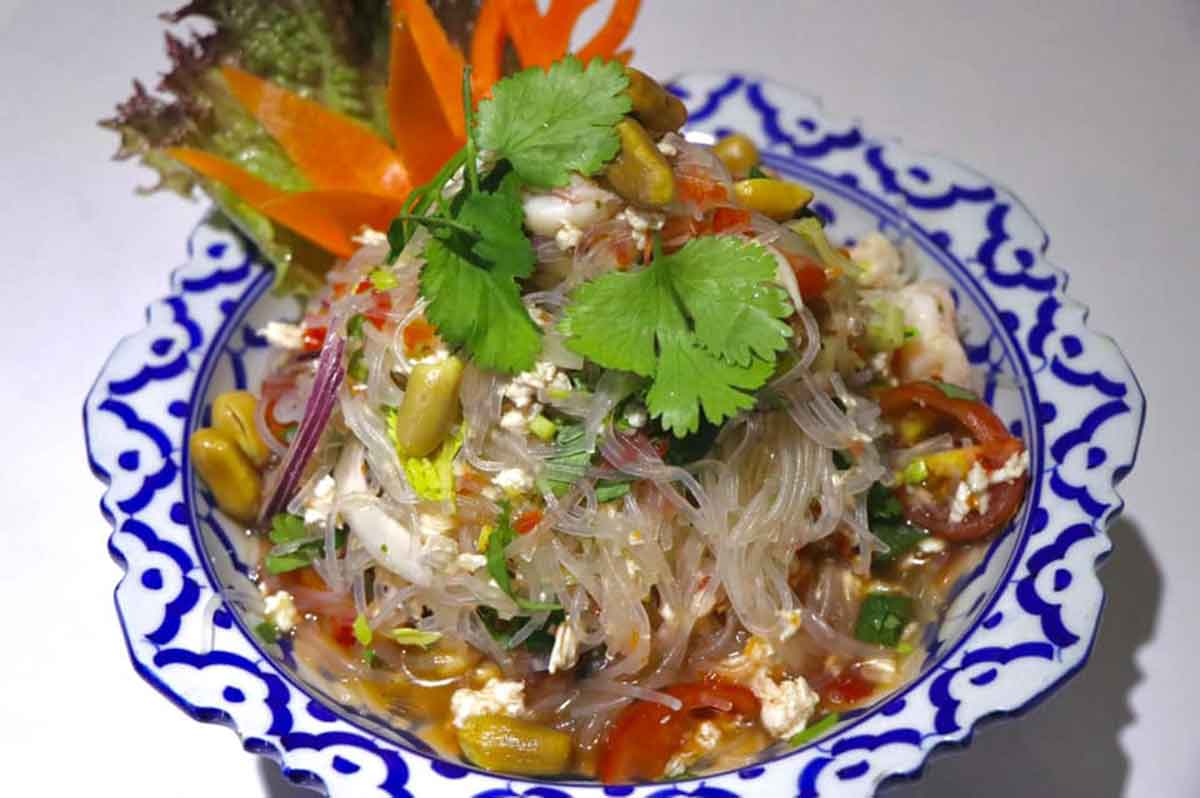 El menú degustación se compone de una ensalada Vermicelli, una sección de entrantes con un surtido de fritos, los platos principales, donde se sirven los tradicionales tallarines salteados con verduras, pato con curry rojo, filete de pescado de dorada con salsa de chile, langostinos al curry verde y arroz blanco. Para terminar, un postre típico estilo tailandés. Todo ello por 28 euros por personas sin bebida.