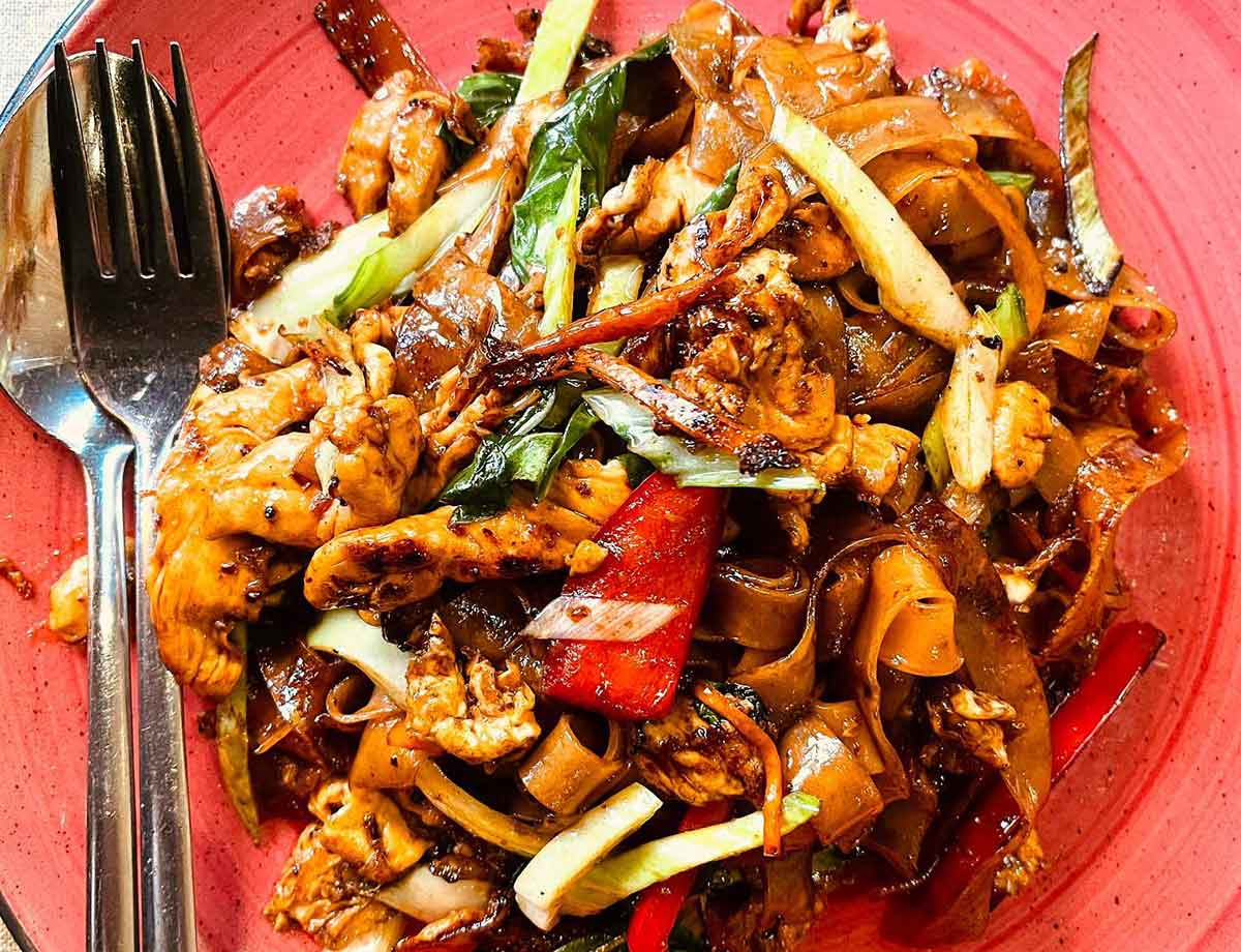 También hay platos de pollo dentro de la carta, como pollo al curry o con soja y cacahuetes. Pollo en salsa massaman o plato de pollo estilo tigre llorando por una media de 16 euros.