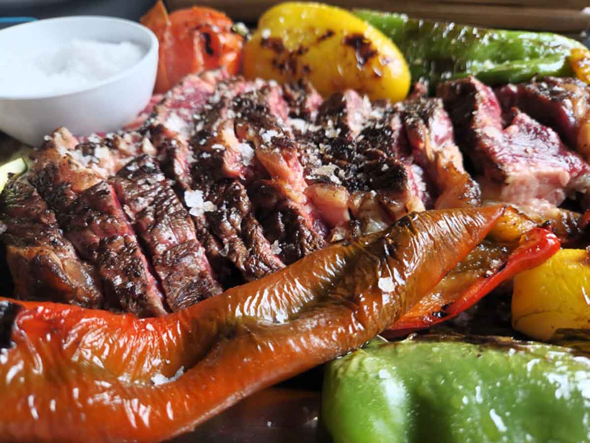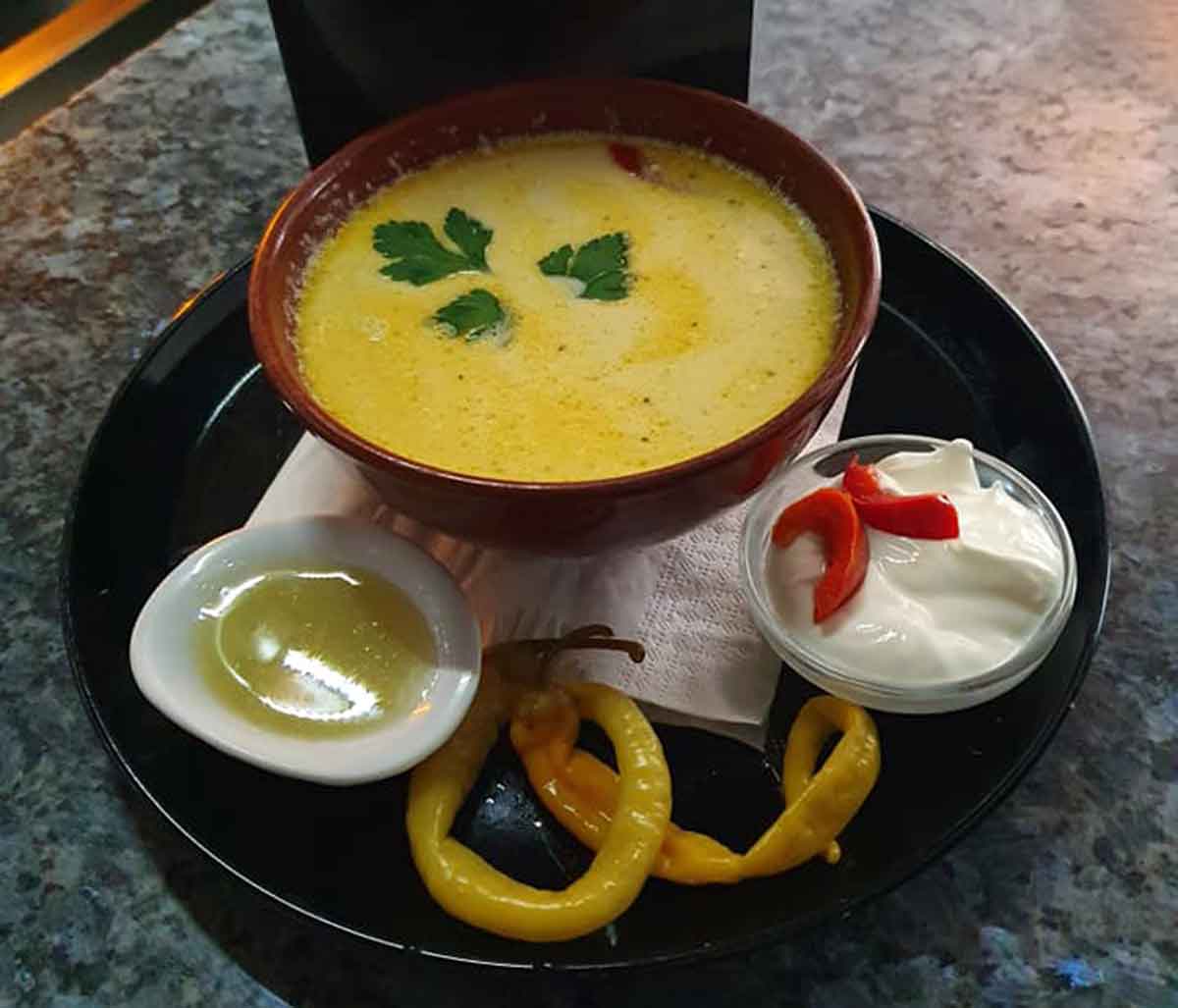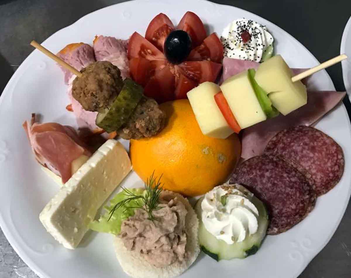 En cuanto a los entrantes, hay opciones de embutidos, calabacines fritos, ensalada balkanika, ensalada urnabes, mish-mash, sarmi y sopa de callos.