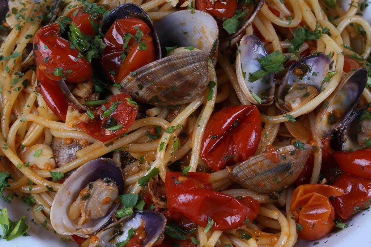 Los platos de pasta tienen un precio medio de 13 euros y destacan los espaguetis clásicos, con aceite y guindilla, los específicos con almejas, a la carbonara, con pesto, negros con gulas o al horno, entre otros.