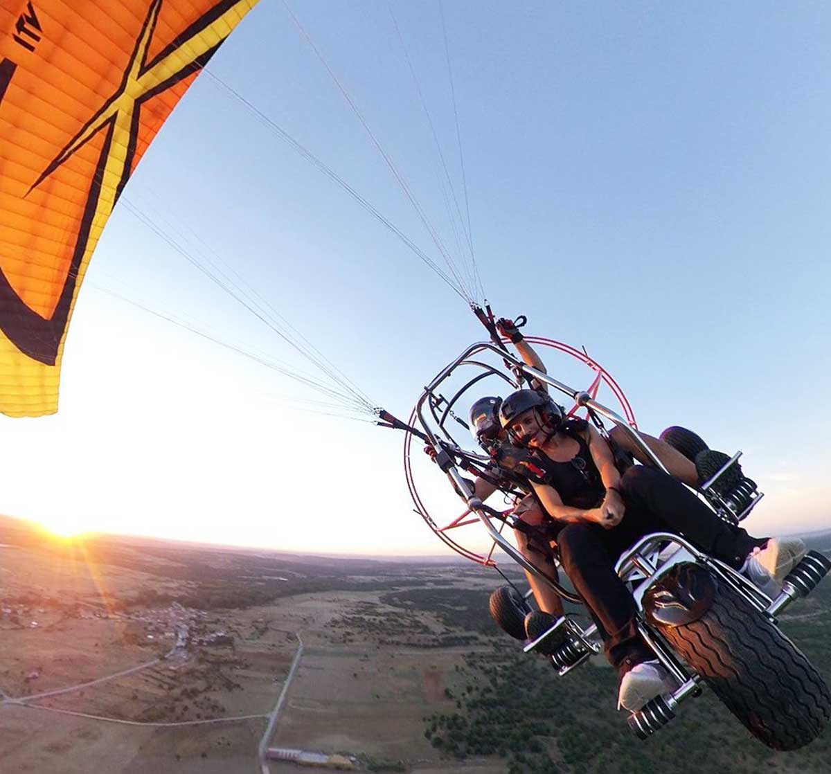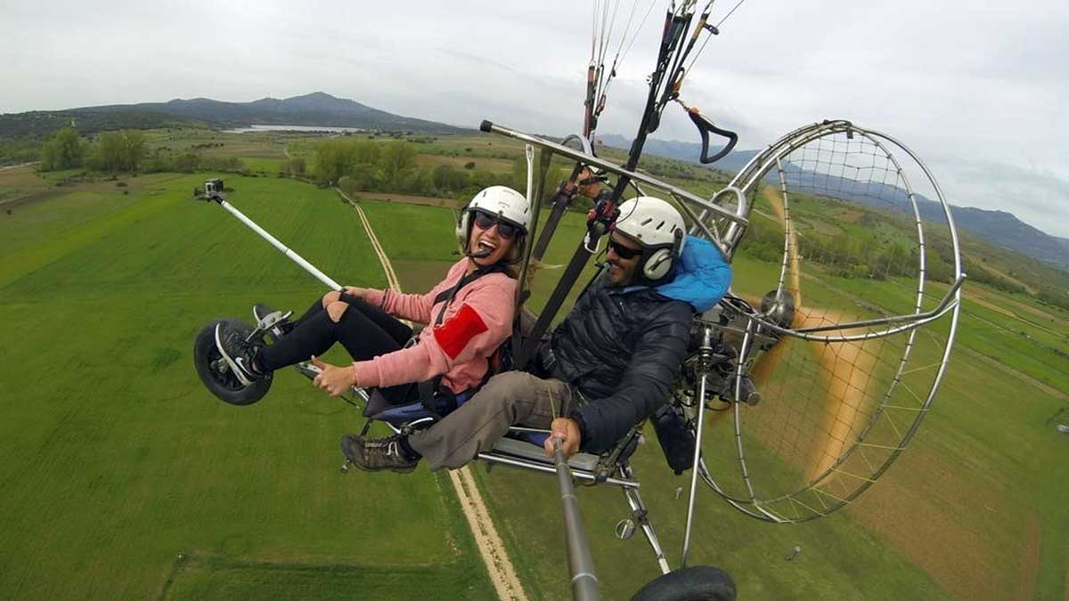 El vuelo en paramotor o paratrike es una variedad de la tradicional actividad del parapente. ¿En qué se diferencian? Esta nueva modalidad incorpora un motor en la parte trasera que facilita enormemente la tarea del movimiento y la conducción. Entre otros aspectos, no necesita alcanzar una altura determinada para despegar porque el motor ayuda a que esto sea posible en cualquier punto. Todas las empresas que ofrecen la actividad realizan una sesión informativa previa en la que dan unas nociones básicas y pautas para disfrutar y aprovechar al máximo la experiencia del vuelo. Además, el vuelo se hace junto con uno de los monitores profesionales.