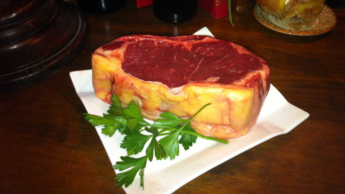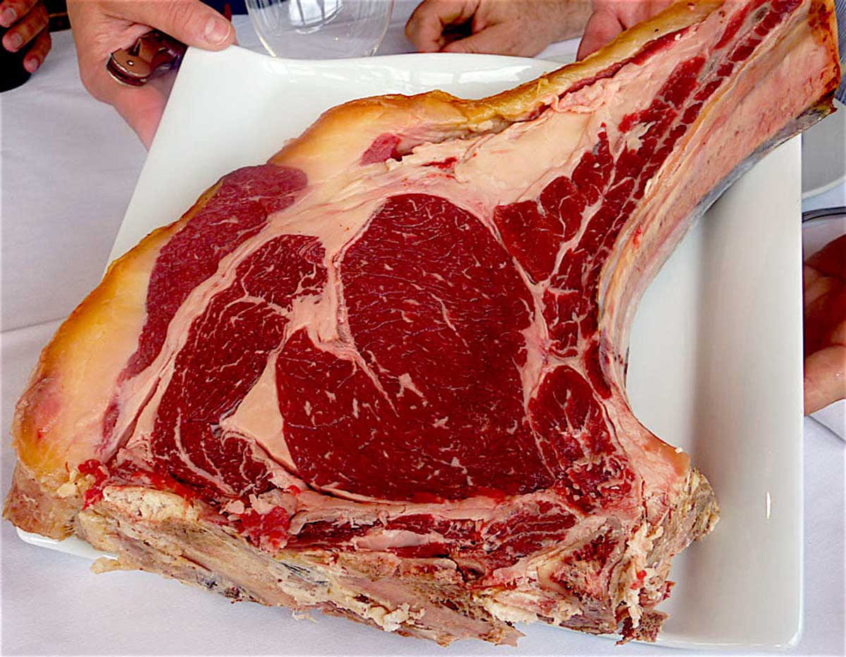 Chuleta de vaca gallega madurada de 900 gramos por 63 euros.