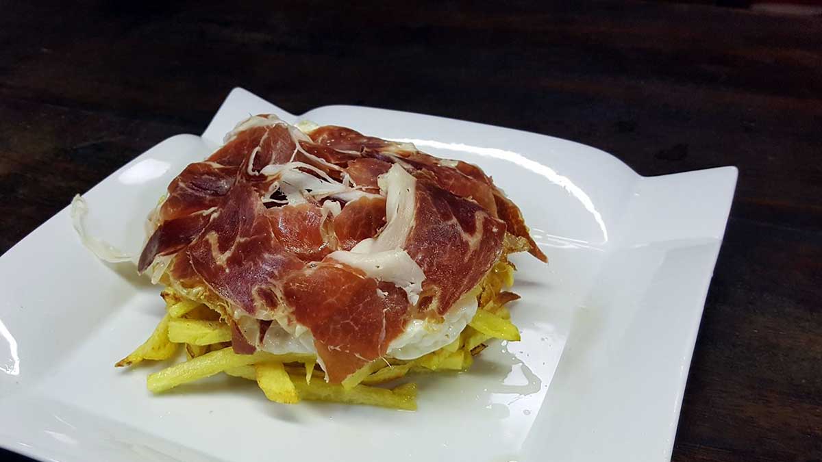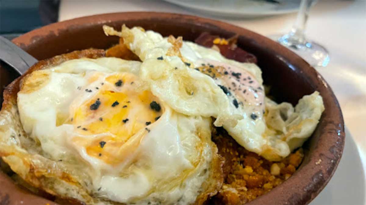 La sección de huevos de corral se completa con revuelto de morcilla, de setas y jamón y de huevos rotos con chistorra y con jamón. Todos los platos por un precio de 13 y 14 euros.