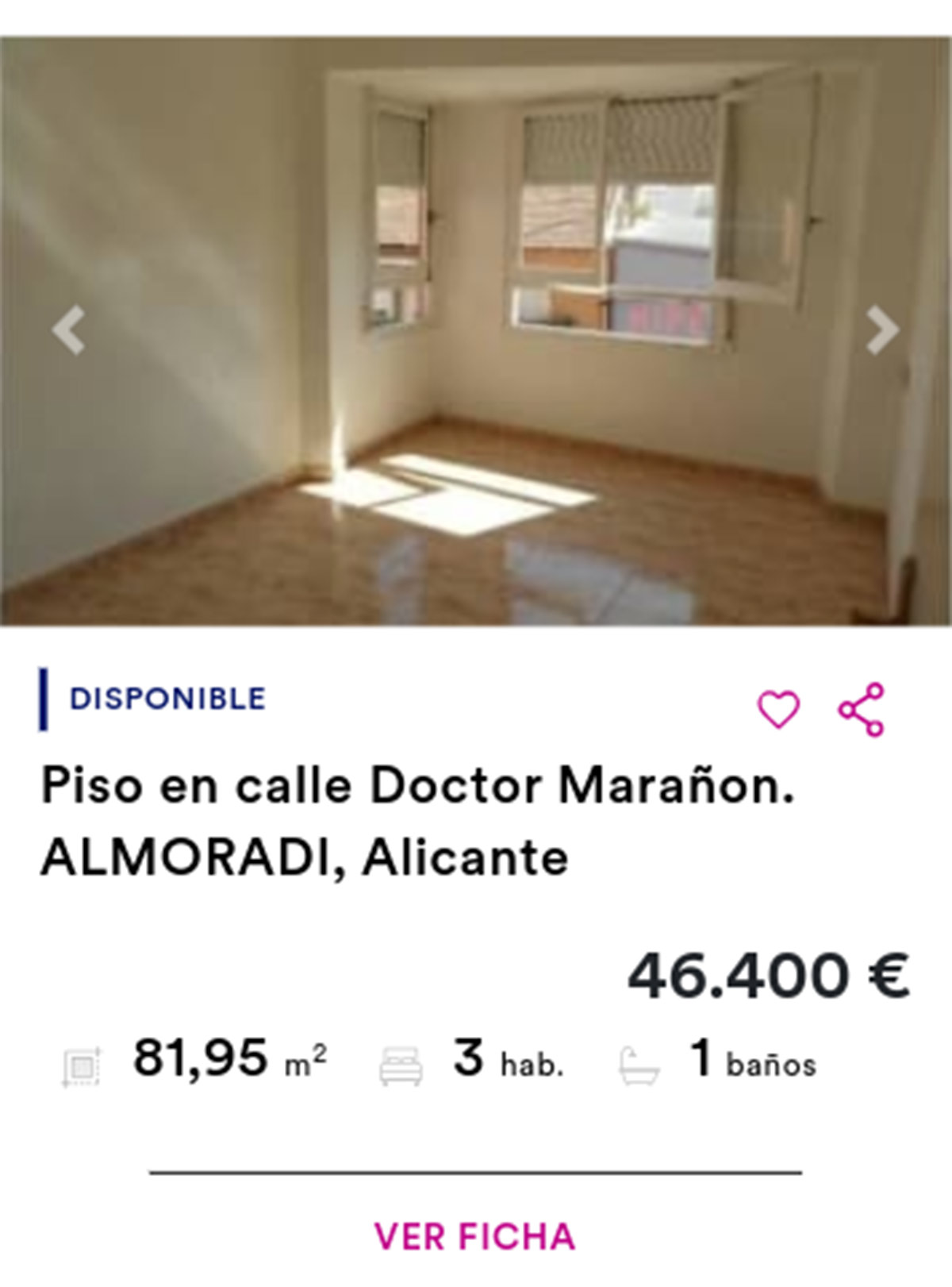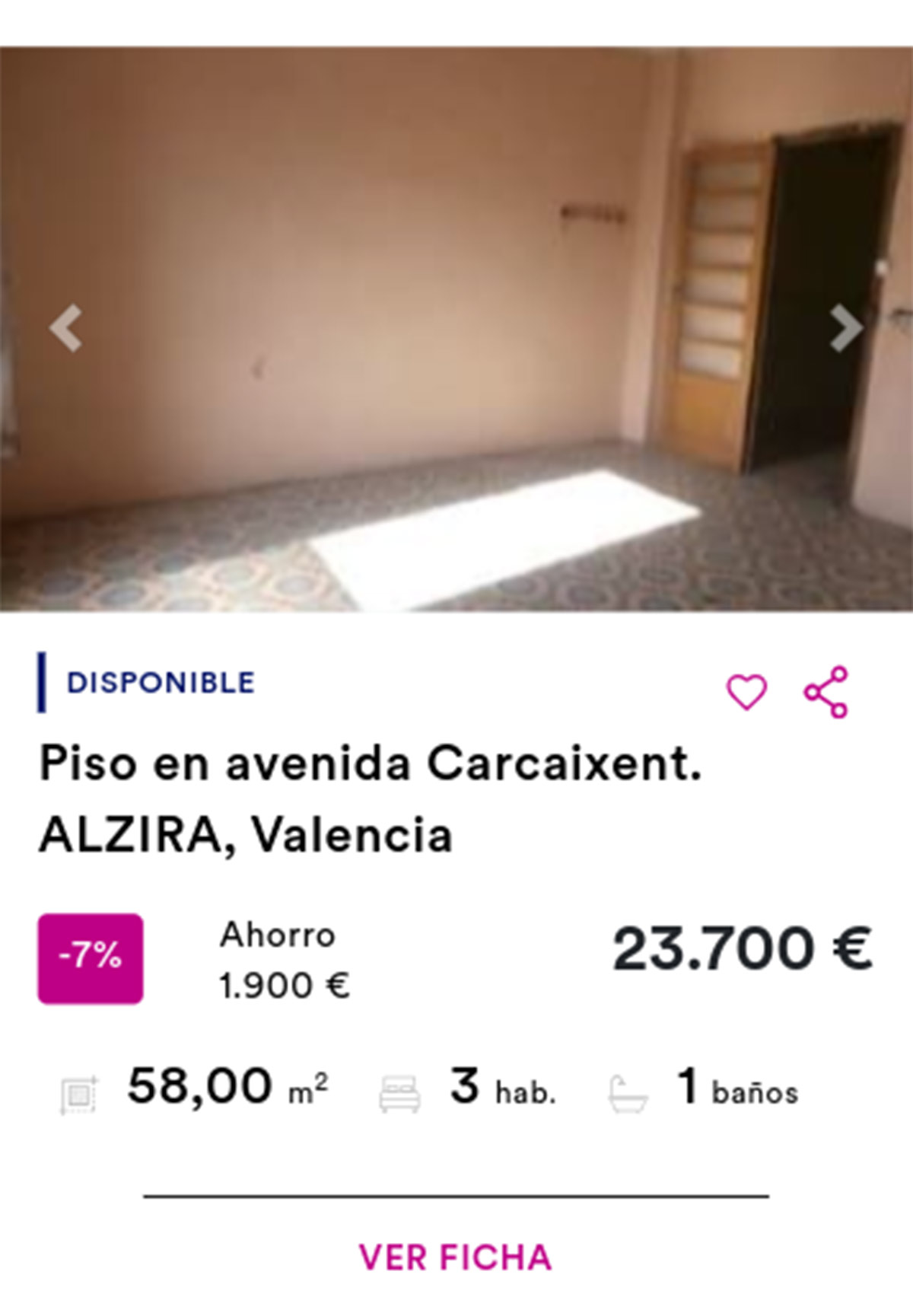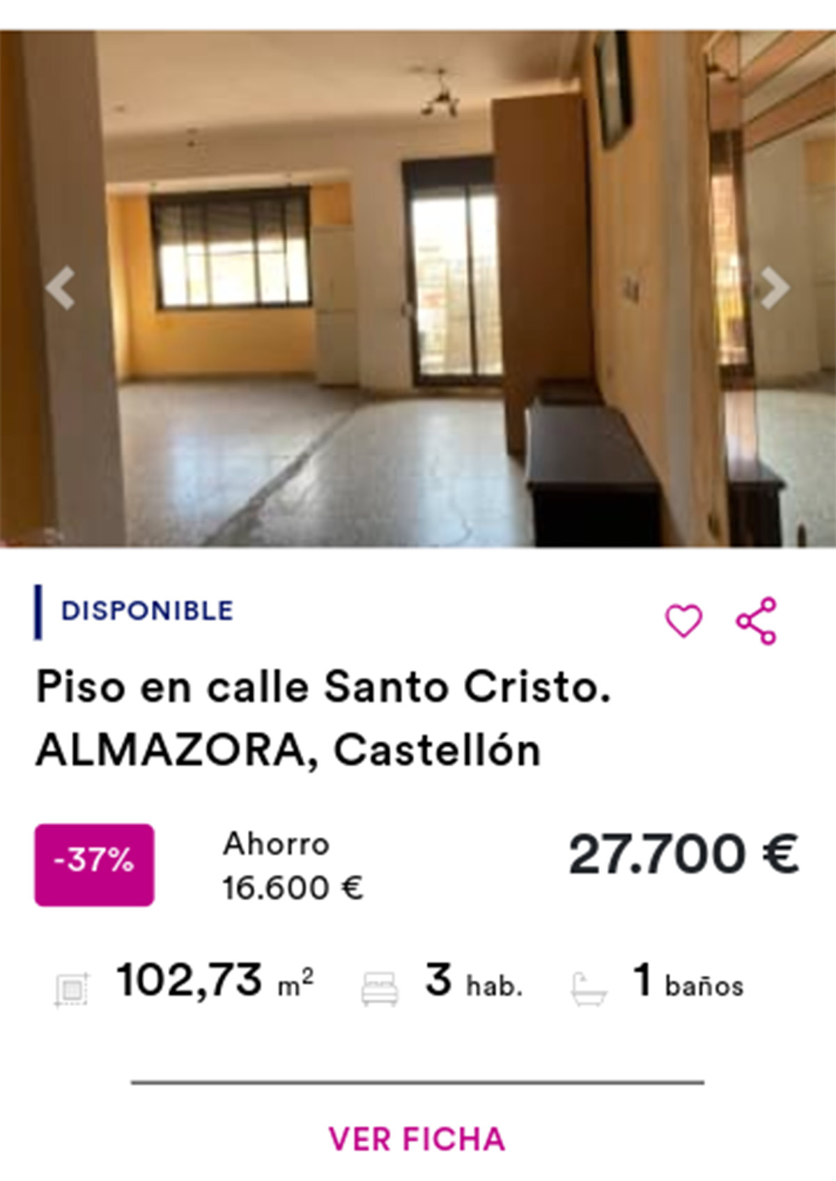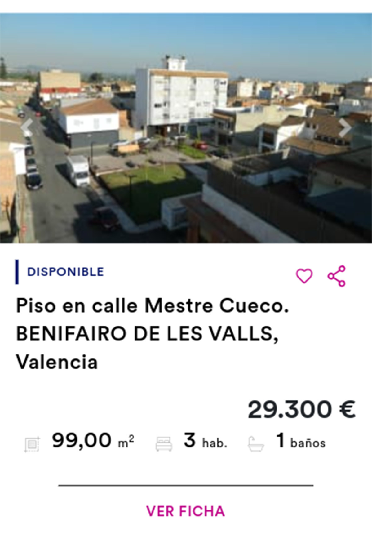 Más de 100 pisos de banco a la venta desde 23.700 euros. Este es el catálogo de viviendas que tiene el portal inmobiliario Haya y que pertenecen a la entidad de Cajamar. Se trata de pisos que se encuentran libre de cargas y disponibles para entrar a vivir y que están distribuidos principalmente por la costa del Levante.