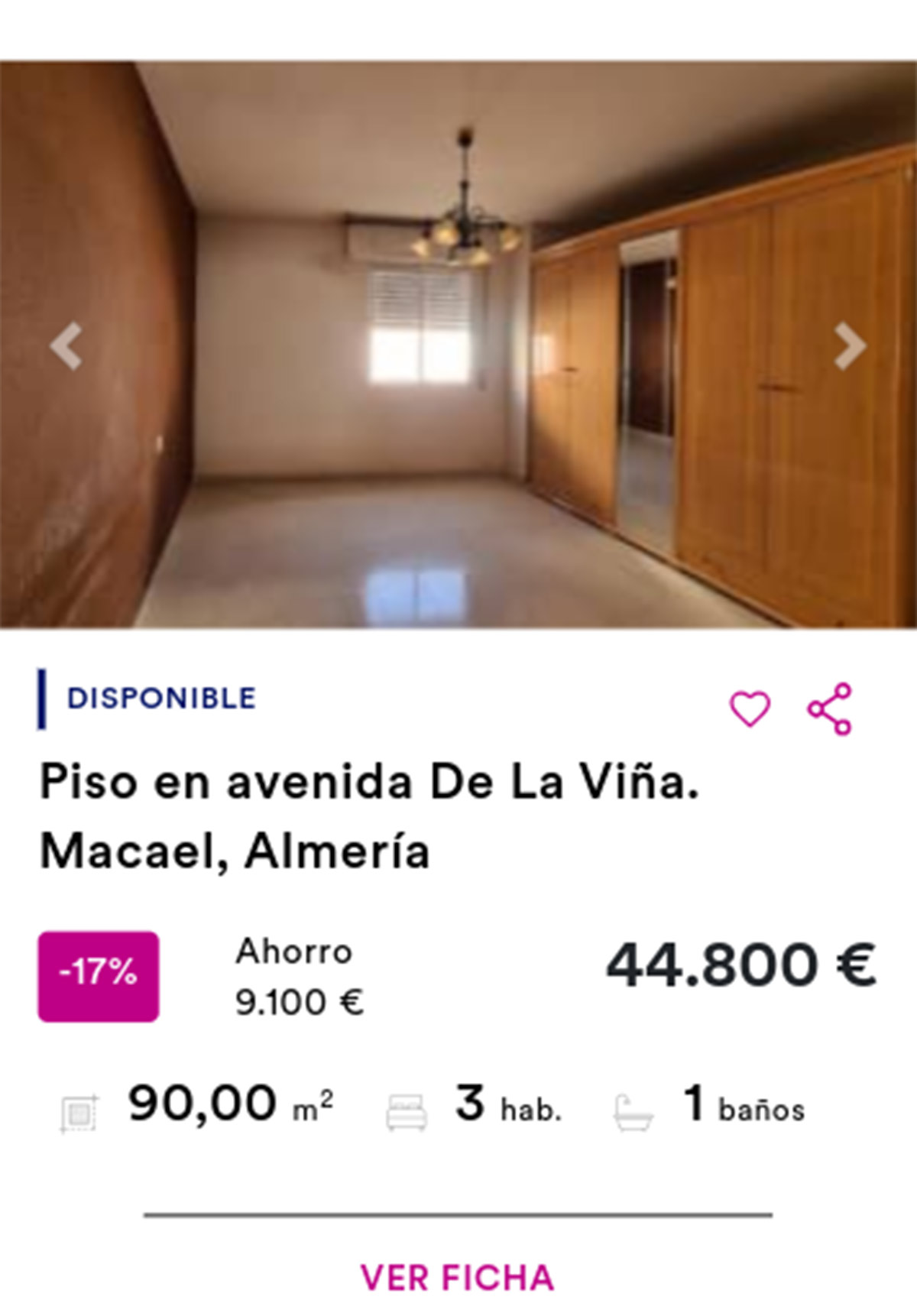 En un rango de precios superior, por encima de 35.000 euros, pero por debajo de 50.000 euros, destacan las siguientes viviendas a la venta de Cajamar en Haya: