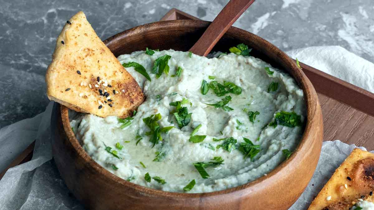 Una pasta de berenjenas asadas con tahini, limón y ajo.