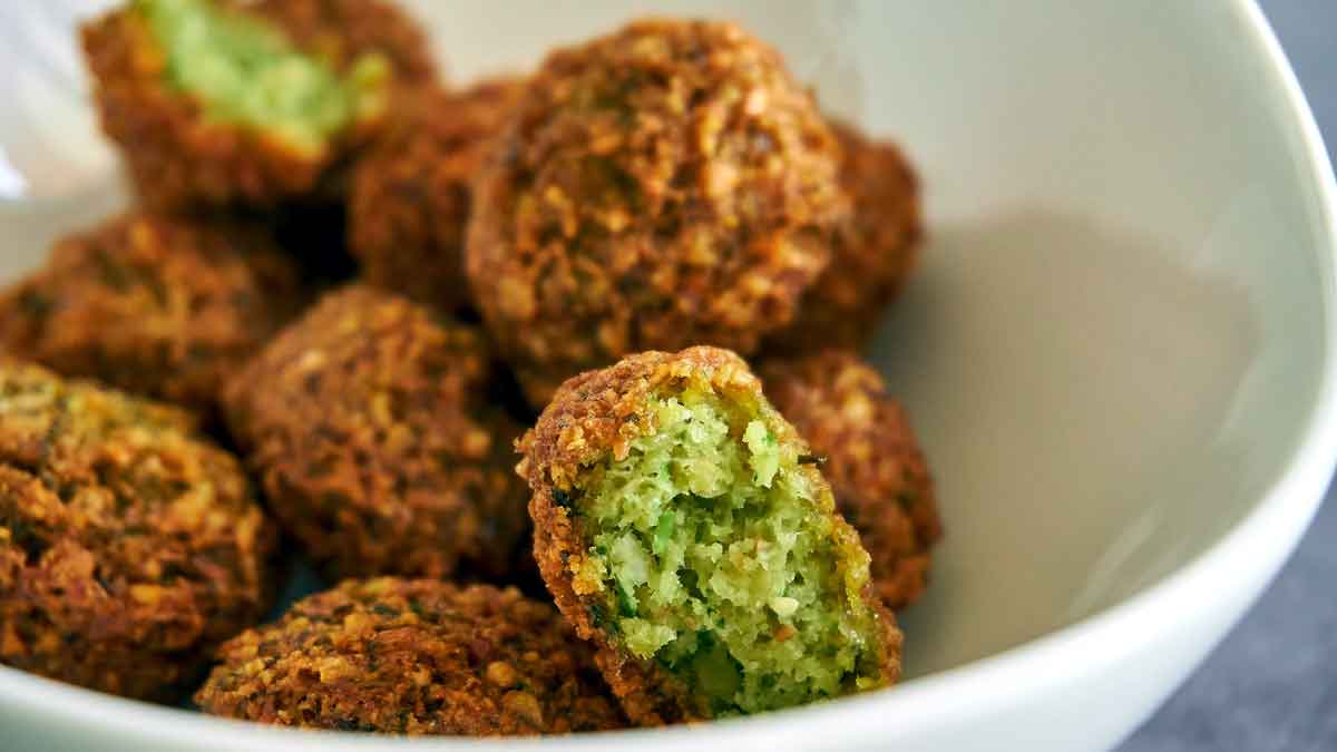 Bolas de garbanzos o habas fritas, generalmente servidas en un pan pita con verduras y salsa.