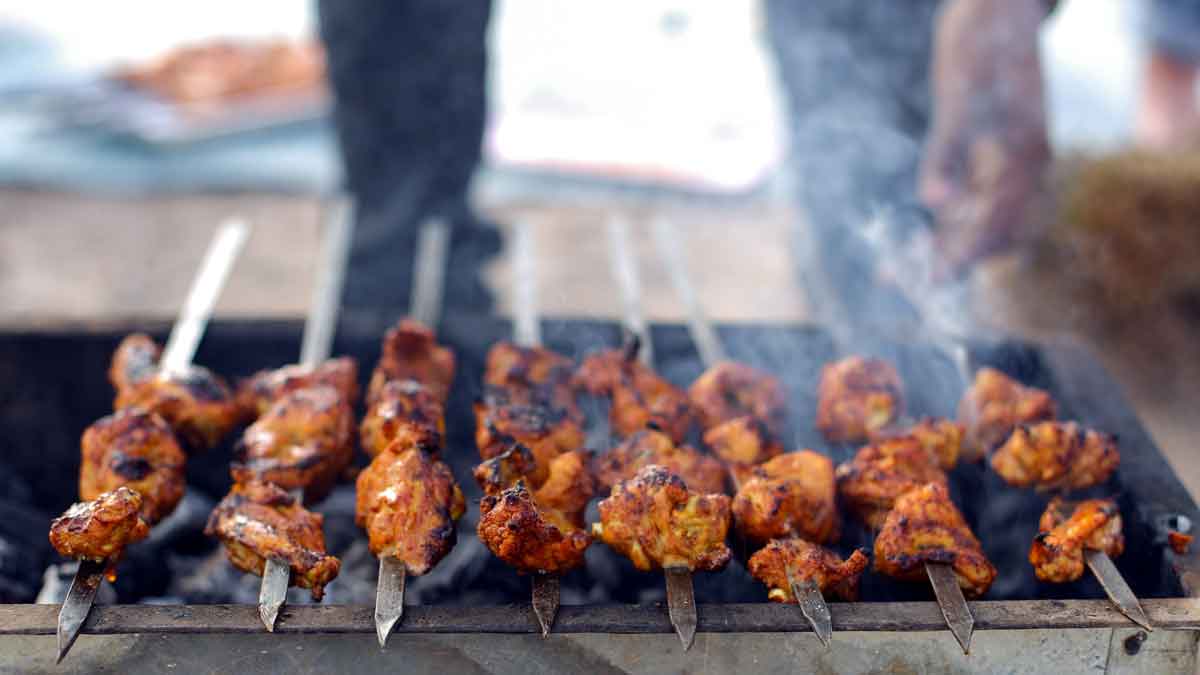 Sería parecido a las brochetas o pinchitos en la gastronomía española.