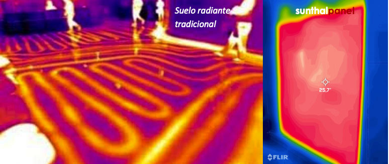- Sunthalpanel. Funciona de manera similar al suelo radiante, pero este se instala en las paredes y techos. El montaje es similar al de un radiador convencional.